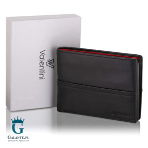 Elegancki i bardzo gustowny portfel męski Valentini w kolorze czarnym z czerwonymi dodatkami. 9 kieszonek na karty i dedykowane miejsce na dowód rejestracyjny sprawiają, że model ten jest wyjątkowy!