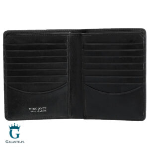 Duży portfel na karty i banknoty od Visconti pomieści aż 14 kart. Jest dostępny w kolorze czarnym lub brązowym.