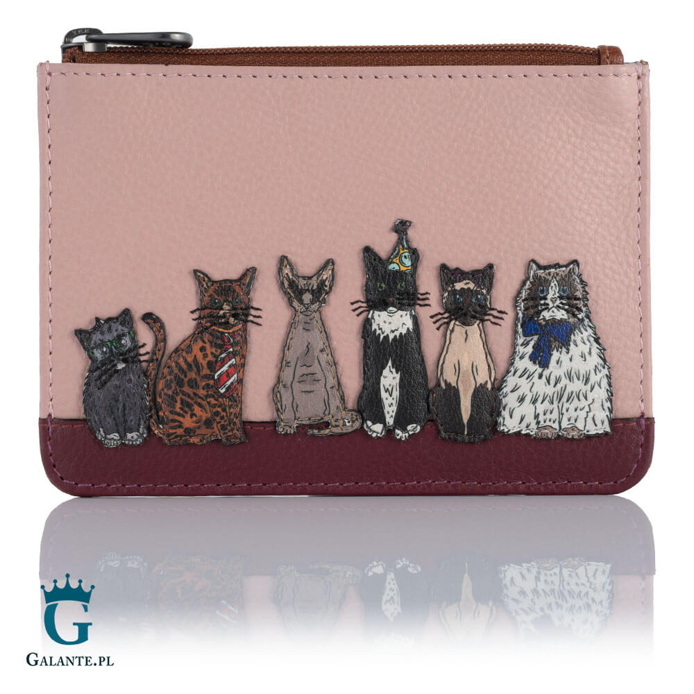 Portfel został wykonany z miękkiej skóry naturalnej, odpornej na załamania lub zarysowania. Naszywka z kotami jest lekko wypukła, bardzo starannie wykonana i mocno przeszyta. Portfel wyróżnia się też ciekawym połączeniem kolorów – przód jest w kolorze różowym, a tył w brązowym. To idealny dodatek dla każdej “kociary”, ale spodoba się wszystkim kobietom, które lubią małe portfele o oryginalnych wzorach i nietypowej kolorystyce.