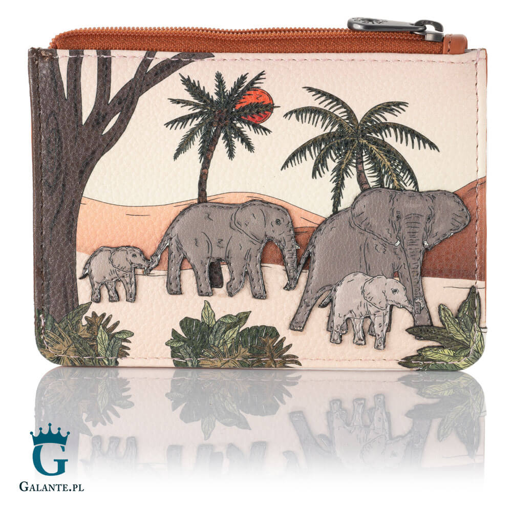 Oto wspaniały portfelik dla podróżniczki, której niestraszne są dalekie i egzotyczne wyprawy. Bilonówka wykonana ze skóry naturalnej w ciepłym orzechowym kolorze, została ozdobiona bardzo szczegółowo wykonanym wzorem rodziny słoni na afrykańskiej sawannie. Brytyjska młodzieżowa marka Yoshi specjalizuje się w oryginalnych wzorach galanteryjnych – kolekcja “Słonie na Sawannie” to jeden z ich bestsellerów.