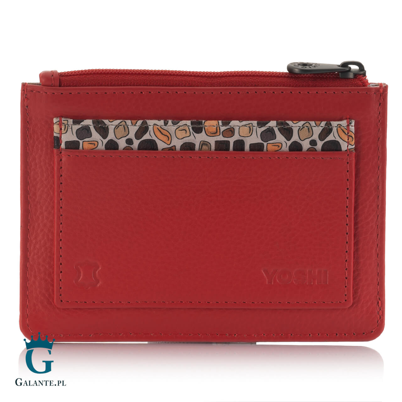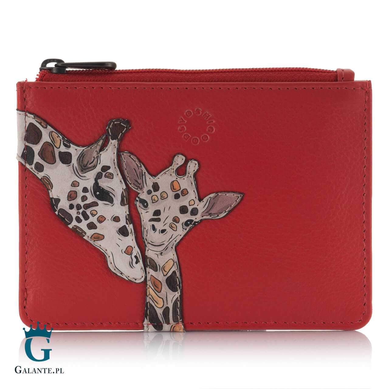 Mały, poręczny portfel na bilon i kartę płatniczą wyróżnia niezwykły wzór. Mama żyrafa nachylająca się do młodego żyrafiątka – obrazek, który podbije serce każdej kobiety, niezależnie od tego, czy jest matką czy też nie planuje potomstwa. Kolorowa naszywka wspaniale oddaje ciepły nastrój macierzyńskiej bliskości. A czerwone tło portfela budzi skojarzenia z ciepłym latem i afrykańskimi zachodami słońca.