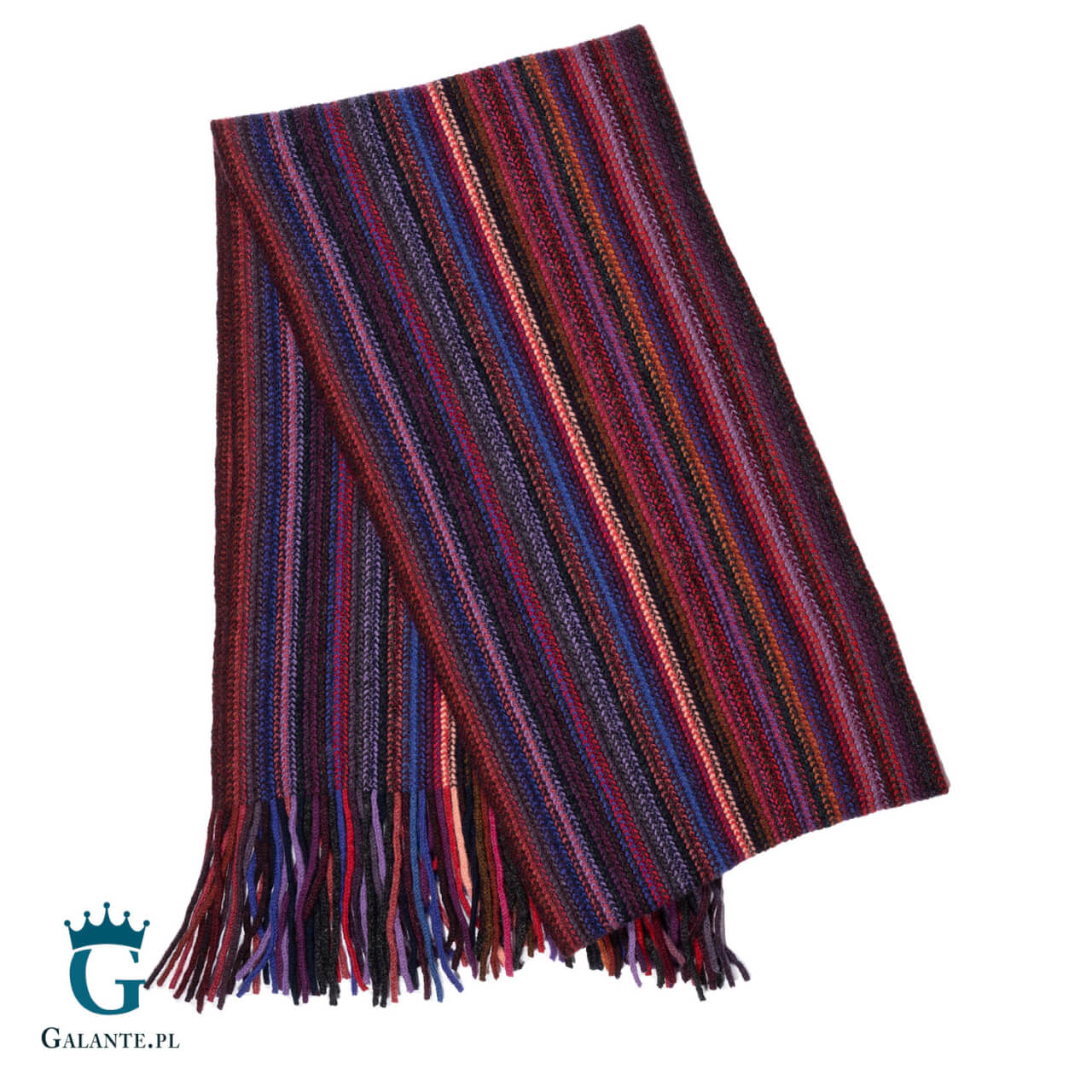 Ciepły szal w paski szkockiej marki The Scarf to niezastąpiony zimowy dodatek dla każdego mężczyzny. Docenią go nawet największe zmarzluchy, ponieważ został wykonany ze 100% naturalnej wełny owczej, która od dawna słynie ze swoich wspaniałych właściwości termoizolacyjnych. Szal ten nie zawiedzie nawet podczas najmroźniejszej zimy, zarówno w mieście, jak i poza nim. Oryginalne połączenie kolorów – czerwieni, fioletu i granatu sprawia, że nie można obok niego przejść obojętnie. Wymiary szala to 180 cm długości i 23 cm szerokości, dzięki czemu można go swobodnie układać na wiele sposobów.