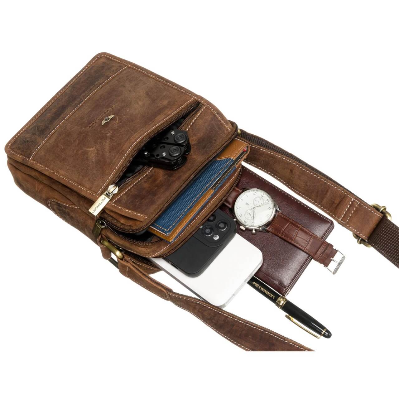 Brązowa skórzana saszetka męska PETERSON 251-NSH