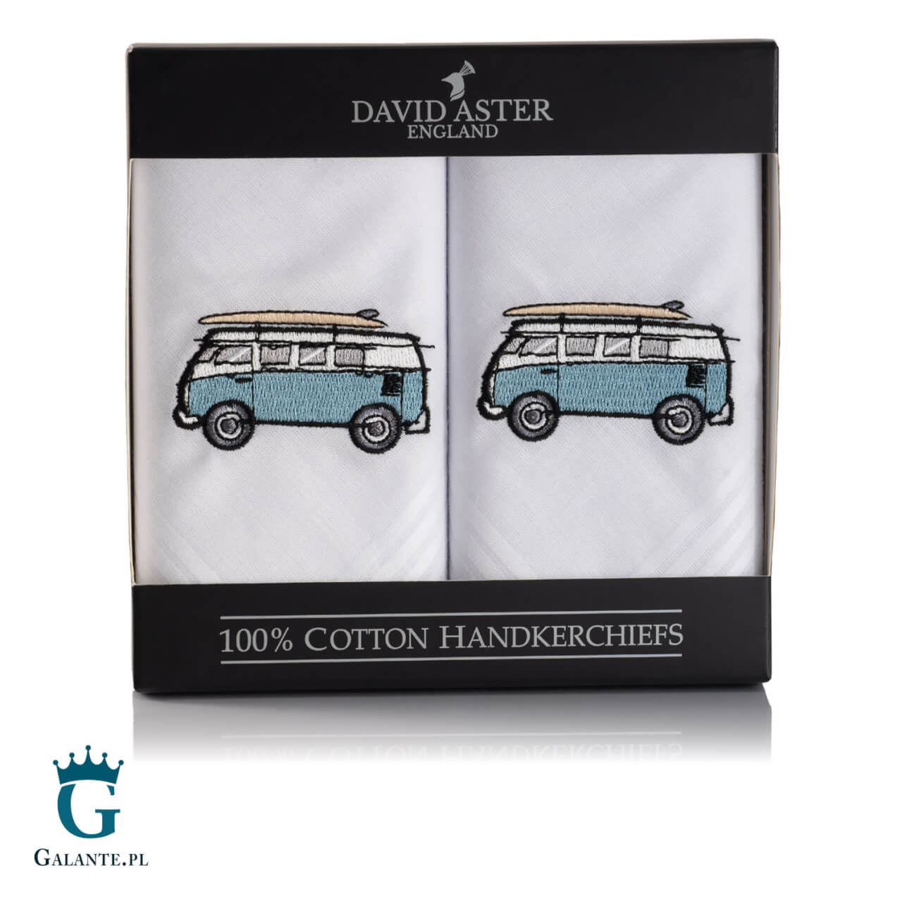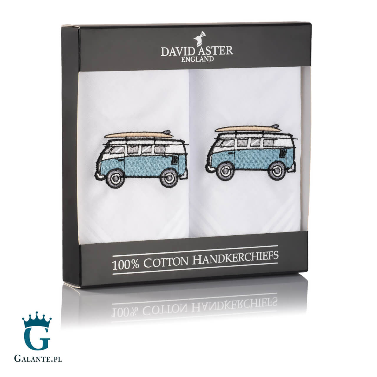 Oto idealny prezent dla mężczyzny, który jest miłośnikiem podróży kamperem. Jeśli wśród znajomych lub w rodzinie masz osobę, która każde wakacje spędza z rodziną w takim mobilnym domu, ten zestaw chusteczek to strzał w dziesiątkę. Chusteczki są wykonane ze 100% bawełny w białym kolorze i ozdobione uroczym haftem staromodnego, hipsterskiego kampera z deską do surfingu na dachu. Od razu przypominają się wakacyjne podróże! A przy okazji bawełniane chusteczki to prezent bardzo praktyczny, który przyda się każdemu modnemu mężczyźnie.