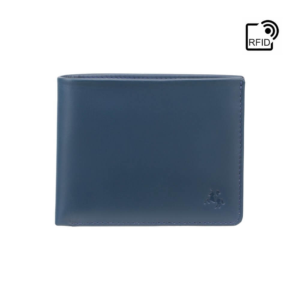 - okładka portfela jest w kolorze grafitowo-niebieskim, a wnętrze klasycznie czarne (Blue Blk)