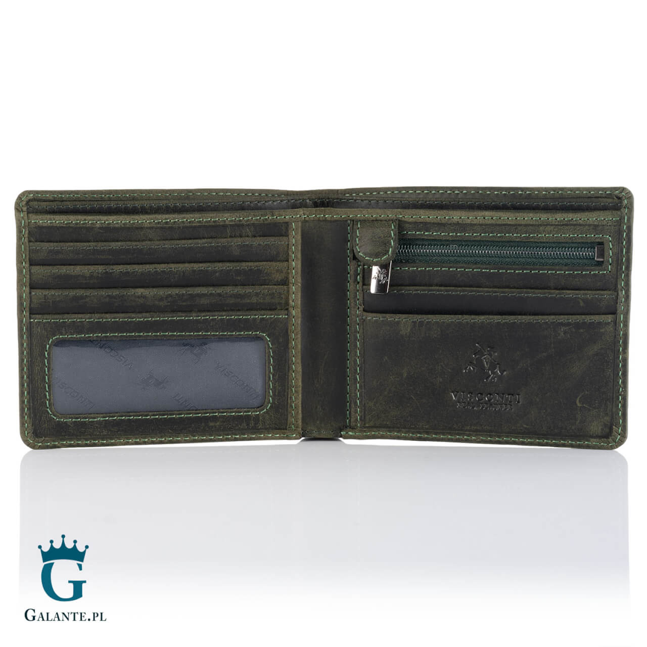 Cienki skórzany portfel męski Visconti Hunter V-707 zielony