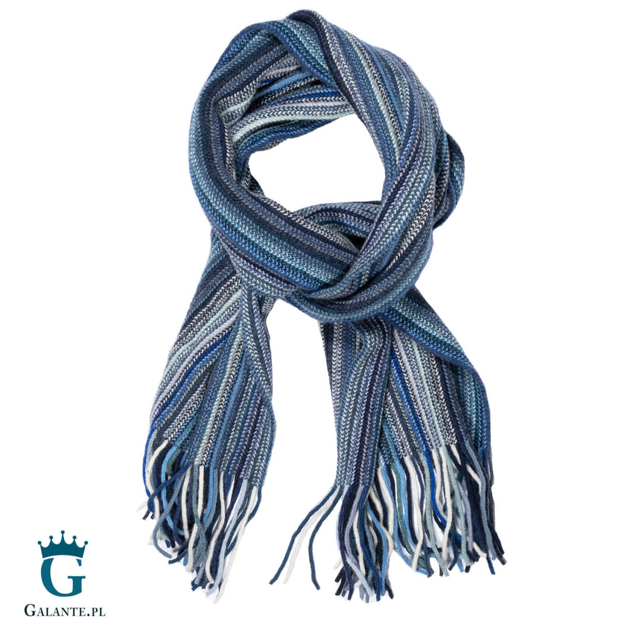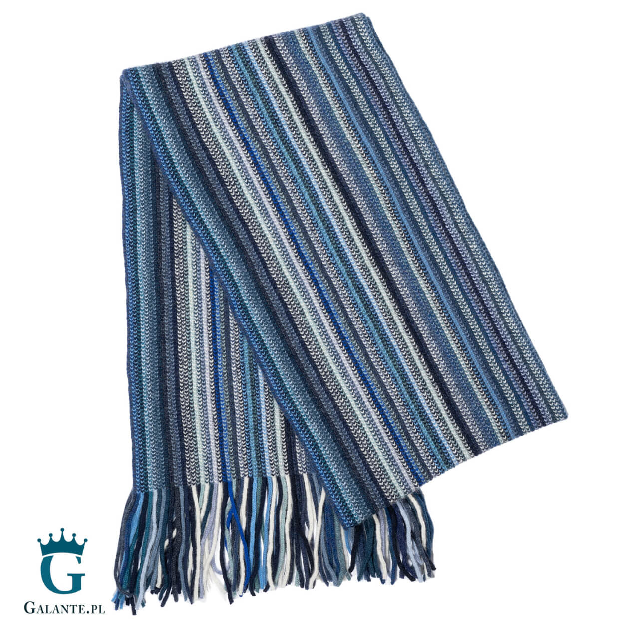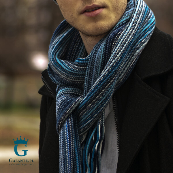 Ciepły szal męski w niebieskie paski marki The Scarf to doskonały wybór dla największych zmarzluchów. Ochroni szyję od zimnego wiatru i silnego mrozu, a dodatkowo dopełni strój podkreślając styl noszącego go pana. Został wykonany ze 100% naturalnej wełny, cenionej od lat ze względu na swoje doskonałe właściwości termoizolacyjne. Jest to produkt szkocki, wykonany z niezwykłą dbałością o szczegóły. Ładnie skomponuje się tak ze sportową kurtką, jak i z eleganckim płaszczem w odcieniach niebieskości, szarości lub w kolorze czerni.