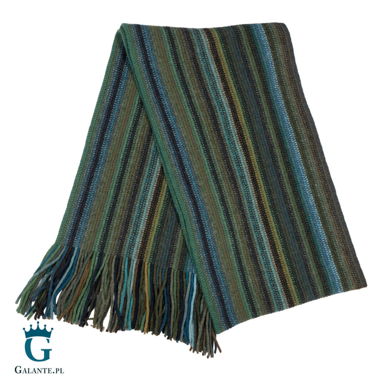 Niezwykle ciepły szal wełniany szkockiej marki The Scarf będzie modnym dopełnieniem zimowej stylizacji. Kolorowe paski w tonacji ciemnej zieleni dodadzą szyku ciemnym płaszczom i sportowym kurtkom. Szal jest bardzo ciepły – jest wykonany ze 100% naturalnej wełny owczej pochodzącej ze szkockich wyżyn i gór. Wymiary szala to 170 cm długości i 23 cm szerokości – taka długość pozwala go układać na rozmaite sposoby.