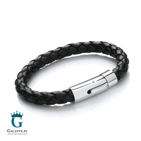 Miłośnicy skórzanych dodatków z pewnością zainteresują się bransoletą wykonaną ze skóry naturalnej. Ma ona kolor czarny, dzięki czemu jest niezwykle uniwersalna. Jest to model pleciony i bardzo solidny. Łatwo się zapina, a zapięcie ma również walory estetyczne – jest eleganckie i podkreśla klasyczny dizajn bransolety. Dodatek ten ładnie układa się na nadgarstku i jest przyjemny w dotyku.