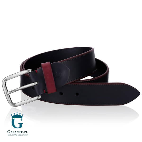 Pasek czarny jest połączeniem klasycznej czerni i subtelnej barwy brązowej, która ozdabia brzegi i szlufkę paska. Każdy mężczyzna gustujący w dodatkach o ciemnych i stonowanych kolorach z pewnością zainteresuje się tym modelem.