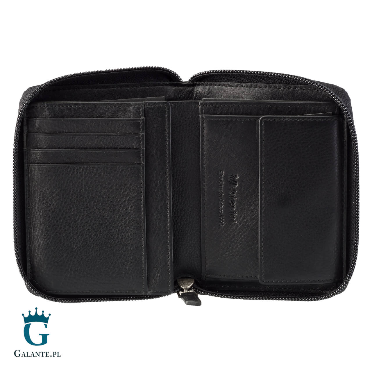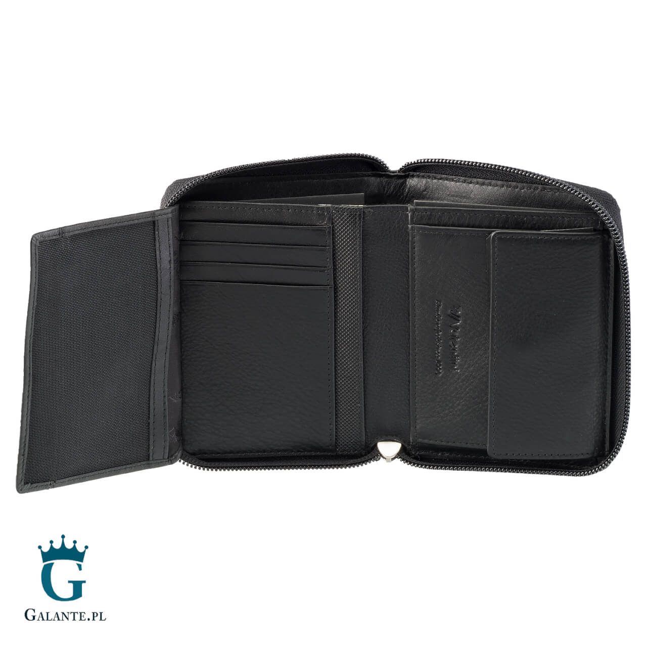 Prezentowany model z zapięciem na zamek błyskawiczny wykonany jest z wysokiej jakości naturalnej skóry, dzięki której portfel jest bardzo przyjemny w dotyku. Portfel jest dość duży, o wymiarach 13 cm wysokości i 10 cm szerokości i orientacji pionowej. Zmieści się w kieszeni marynarki, a równocześnie jest wyjątkowo pojemny.