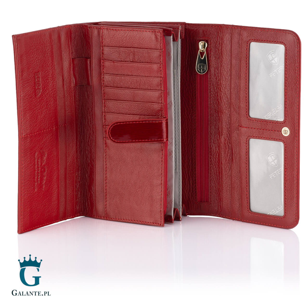 Skórzany Lakierowany Portfel Damski PETERSON 421077 – czerwony