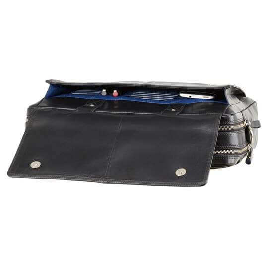 Z przodu torby znajduje się kieszeń o wymiarach 34 cm x 22 cm z klapą zamykaną na dwa zatrzaski magnetyczne. W środku znajdują się uchwyty na długopisy i pióra, kieszeń na telefon oraz 5 miejsc na karty lub wizytówki. Z tyłu torba jest wyposażona w dodatkową, płaską, zapinaną na zamek kieszeń o wymiarach ok. 37 x 20 cm oraz pętlę, za pomocą której torbę można przymocować np. do walizki podróżnej.