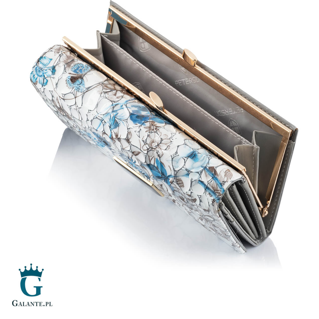 Duży portfel damski malowany w kwiaty PETERSON PH24 – niebieski