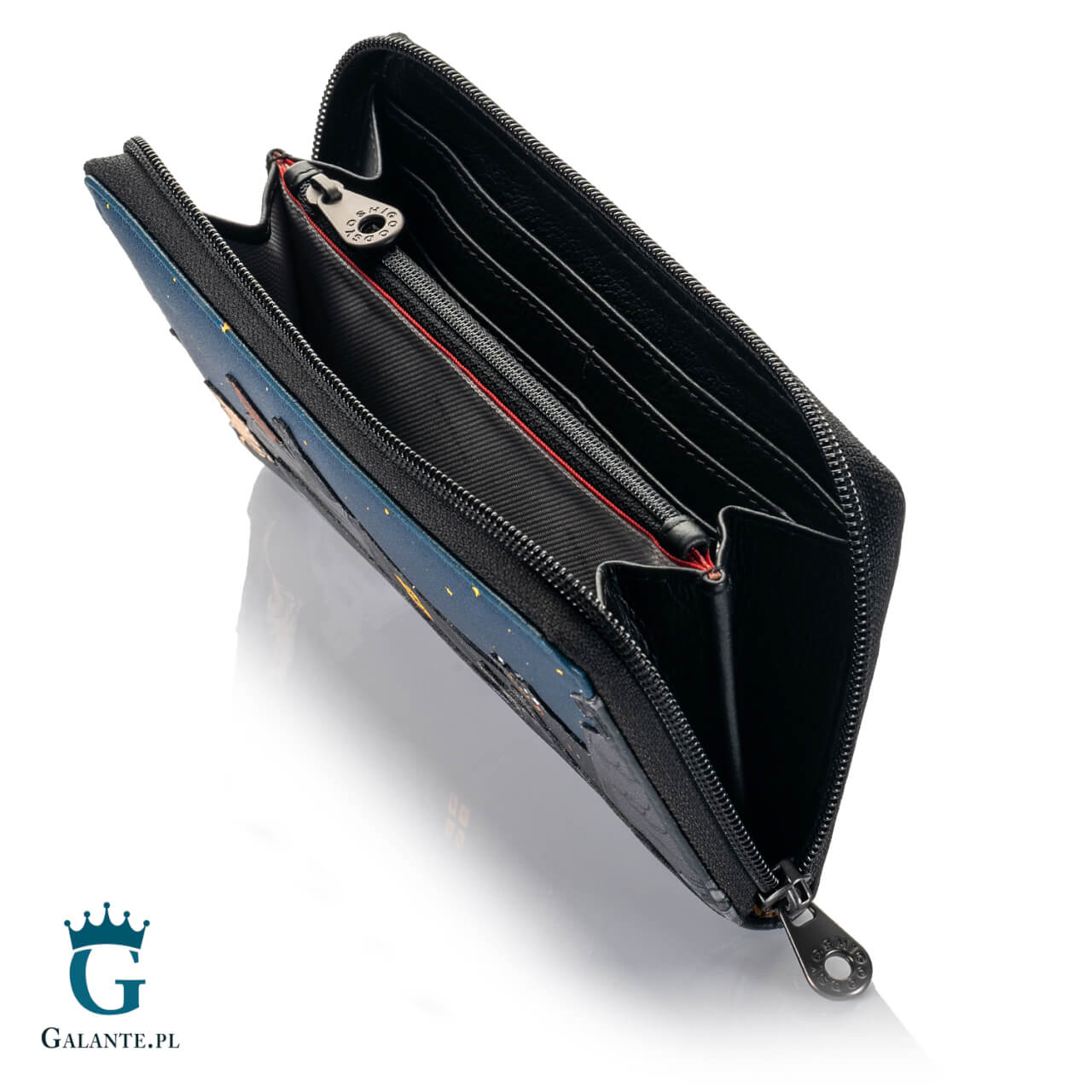 Duży skórzany portfel damski Nocne Koty Yoshi