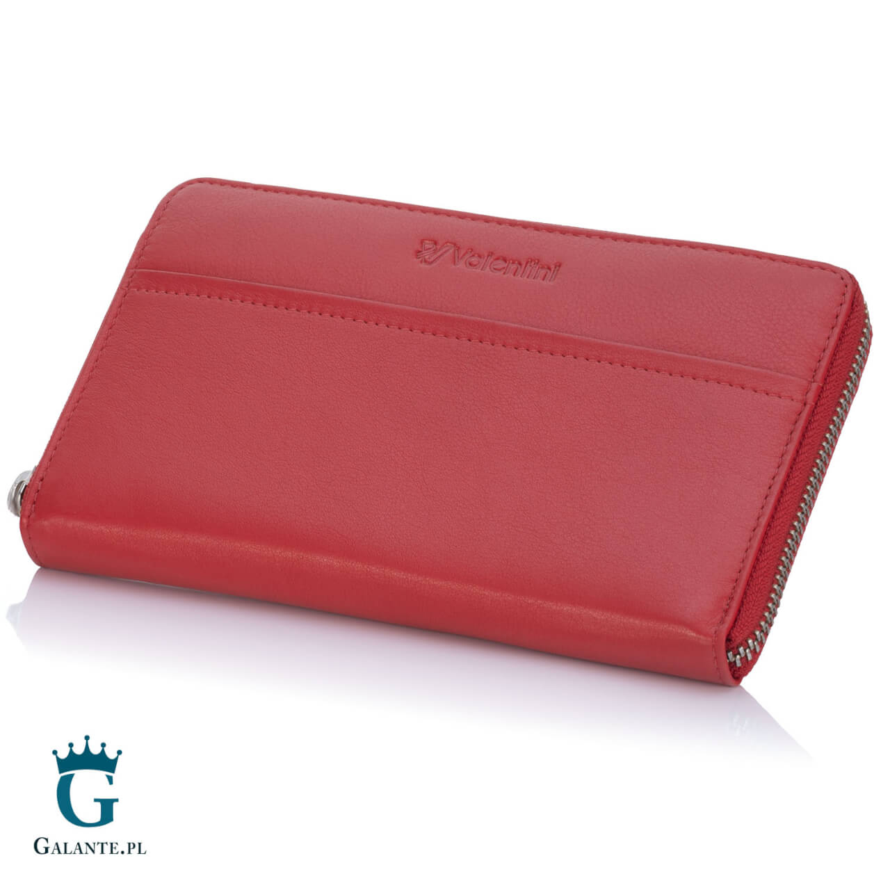 Duży portfel damski Valentini zamykany na zamek 154-820 – czerwony