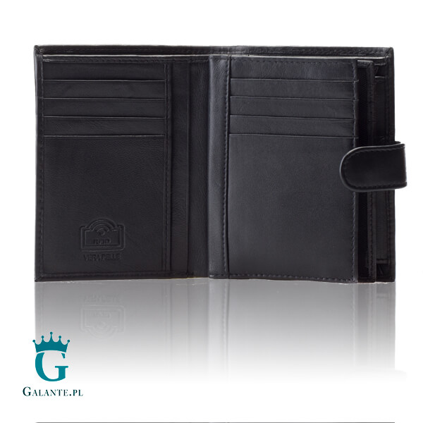 Dodatkowo portfel ten posiada funkcję RFID. Jest to ochrona danych z kart kredytowych. Specjalna membrana wszyta w portfel uniemożliwia odczyt kart płatniczych za pomocą metody zbliżeniowej. Możesz być pewny, że Twoje pieniądze nie wpadną w niepowołane ręce. Całość wykonana z naturalnej skóry koloru czarnego, trwałej i odpornej na uszkodzenia mechaniczne.