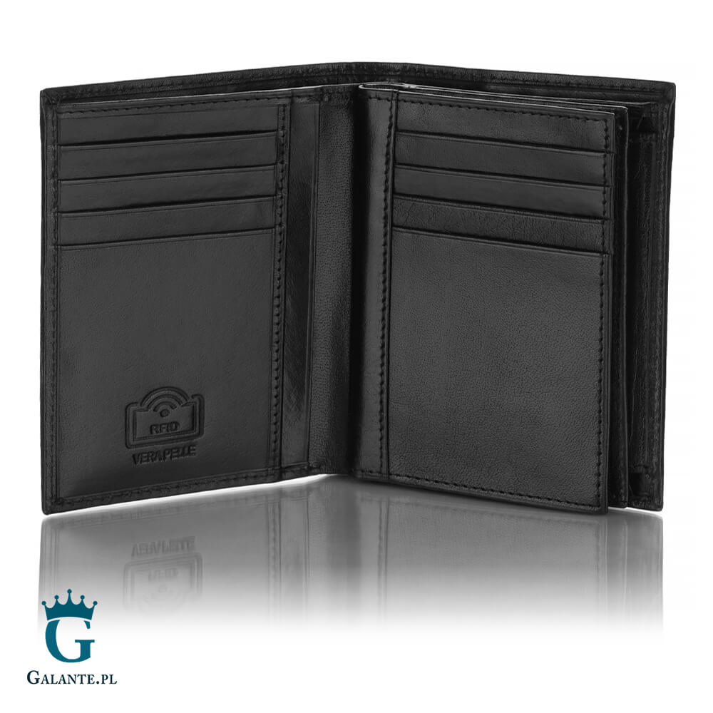 Dodatkowo portfel ten posiada funkcję RFID. Jest to ochrona danych z kart kredytowych. Specjalna membrana wszyta w portfel uniemożliwia odczyt kart płatniczych za pomocą metody zbliżeniowej. Możesz być pewny, że Twoje pieniądze nie wpadną w niepowołane ręce.