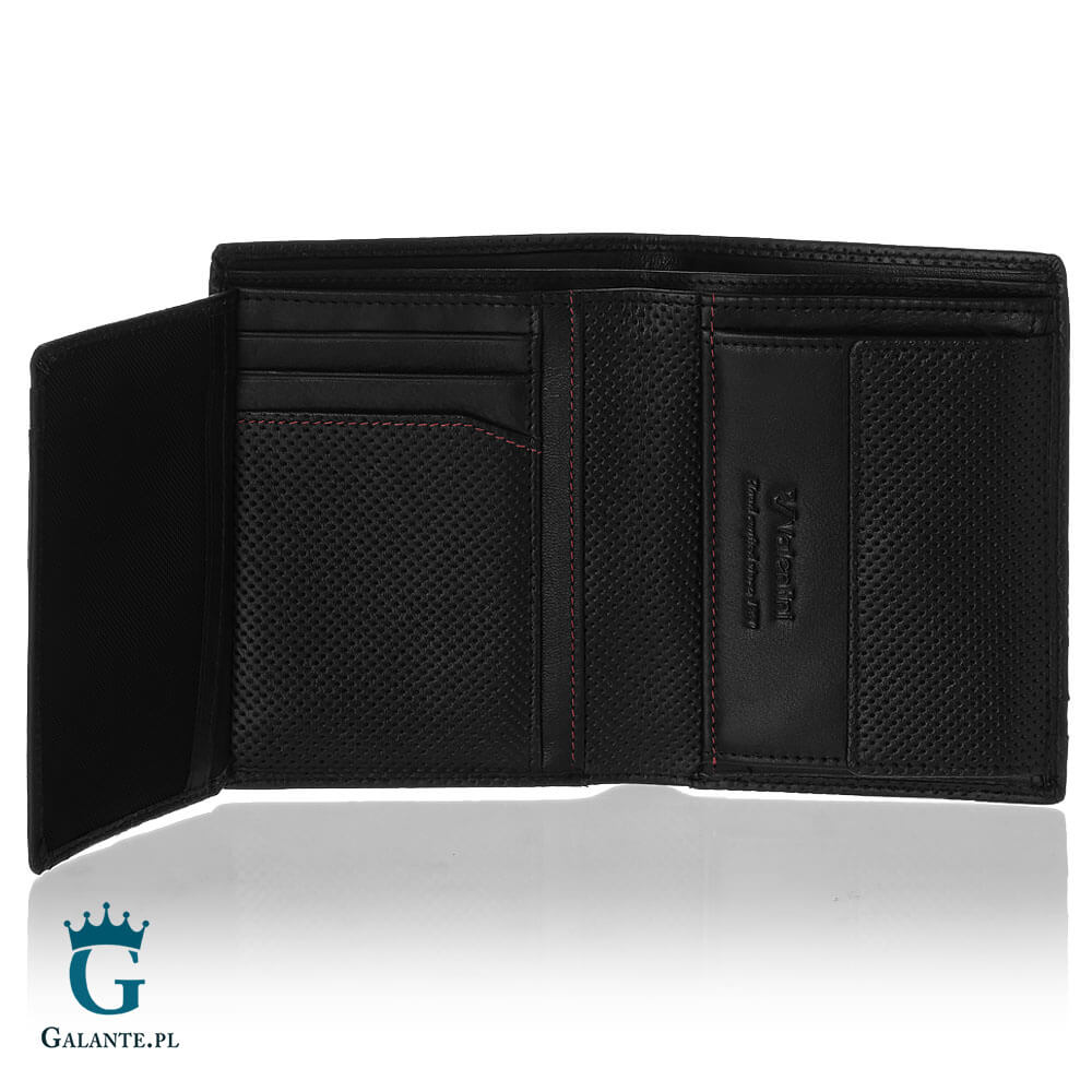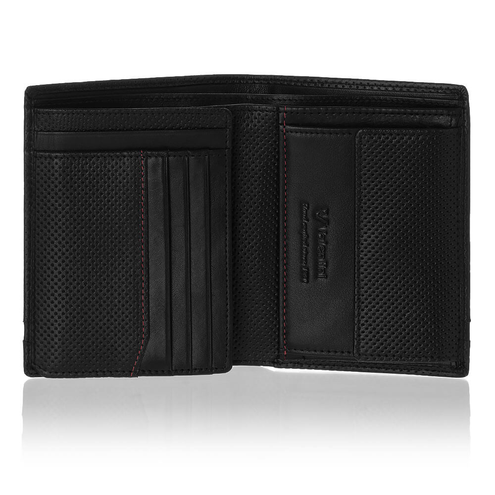 Modele z kolekcji Valentini Perforated 13V łączą w sobie elementy wykonane ze skóry naturalnej o różnej fakturze. Wykorzystano tutaj skórę perforowaną, która w połączeniu z elementami o gładkiej powierzchni wygląda szalenie efektownie. Dodatkowym elementem zdobniczym są czerwone przeszycia wewnątrz portfela, które dodają tej kolekcji wyjątkowego szyku.