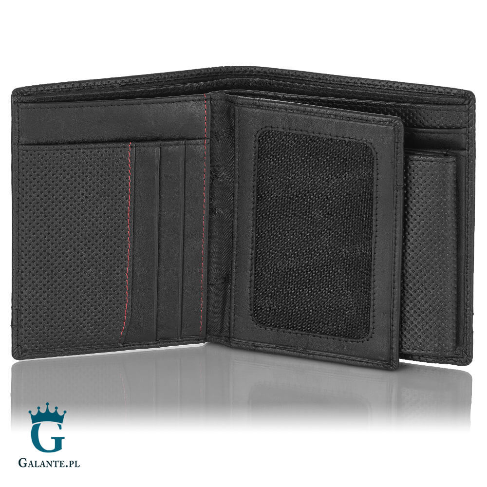 Prezentowany model wykonany jest z wysokiej jakości naturalnej skóry, dzięki której portfel jest miękki i bardzo przyjemny w dotyku. Jednak nie tylko delikatna skóra jest jego zaletę. Należy także wspomnieć o bardzo praktycznym kroju, miejscu na dowód rejestracyjny oraz wielu przegródkach, w których zmieszczą się dokumenty i karty płatnicze i rabatowe.