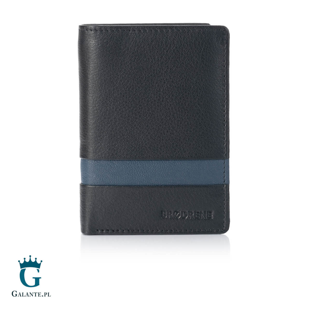 Elegancki portfel męski skórzany Brodrene G-117 czarno-niebieski