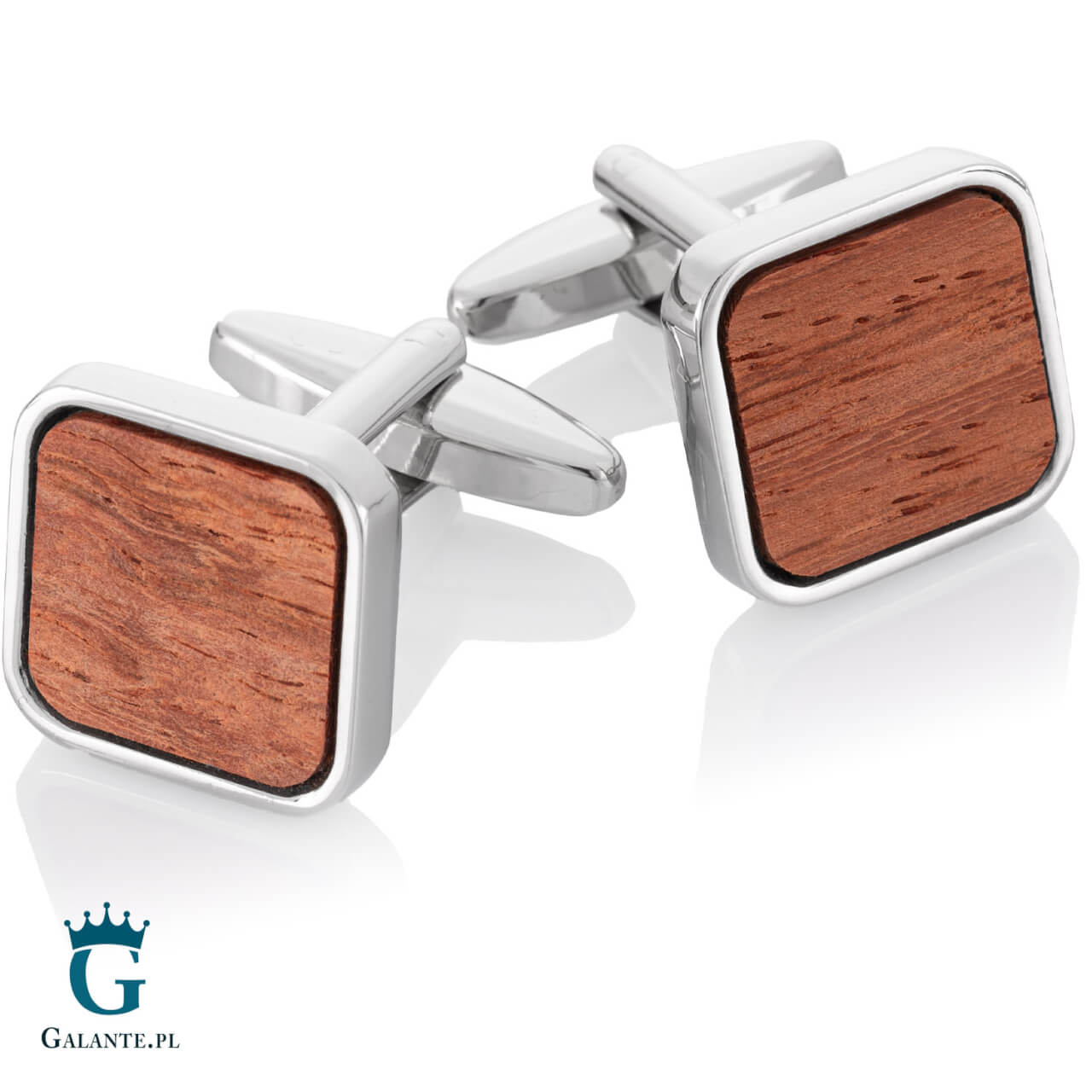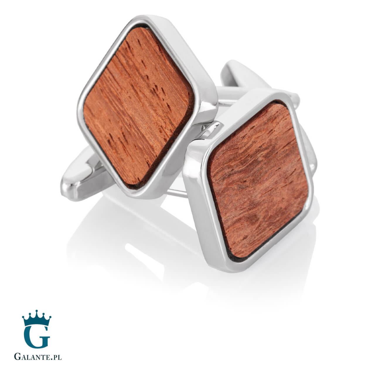 Ekskluzywne spinki do mankietów wykonane ze stali szlachetnej w srebrnym kolorze i ozdobione egzotycznym czerwonym drewnem. Drewno różni się kolorem i wzorem słojów, więc każda para spinek jest niepowtarzalna. To wspaniały dodatek dla każdego mężczyzny, który ceni oryginalną biżuterię wykonaną z najwyższej jakości materiałów. Sprawdzą się również jako elegancki prezent dla członka rodziny lub cenionego współpracownika.