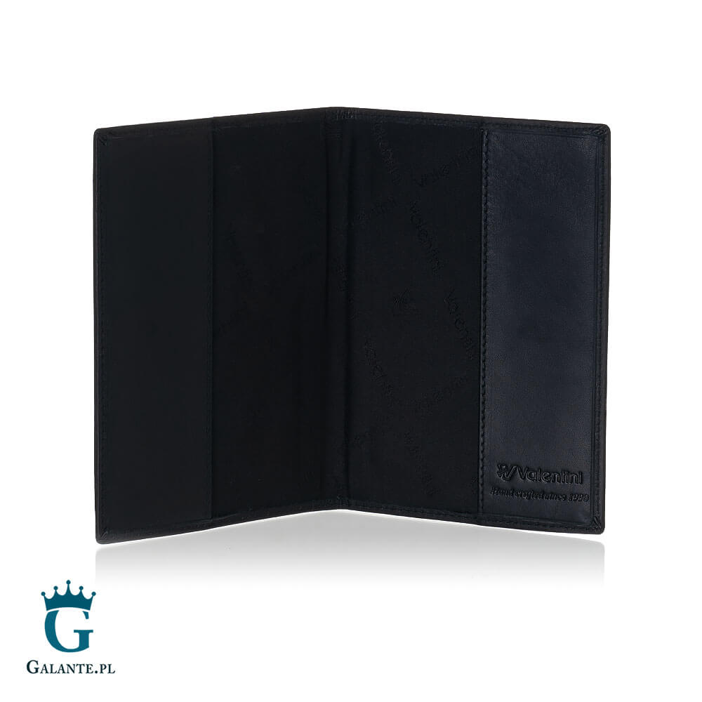Etui na paszport 15V-020 ma orientację pionową i wymiary 10 cm x 14,5 cm. Okładka jest ozdobiona tłoczonym logo producenta oraz pionowym paskiem o delikatnej fakturze.