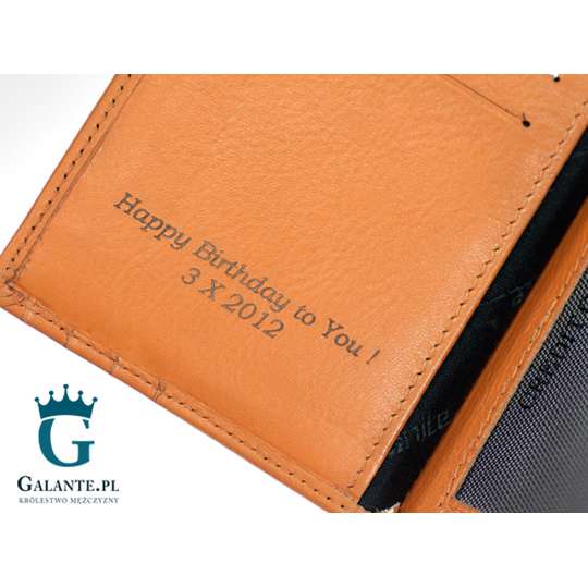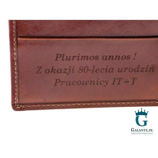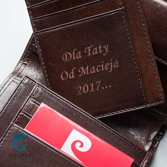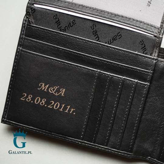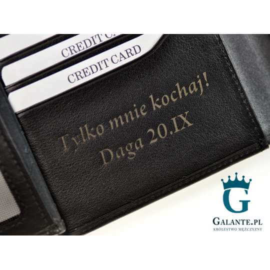 W Galante.pl proponujemy możliwość wykonania graweru laserowego na skórzanych portfelach. Grawer na portfelu ze skóry naturalnej to pomysł na wspaniały prezent nie tylko dla ukochanej osoby czy przyjaciela, ale także na oryginalny gadżet dla firmy. Możesz zamówić dany produkt z logo swojej firmy bądź innym potrzebnym hasłem. Będzie on eleganckim dodatkiem do wizerunku twojej firmy. Portfel, który podarujesz będzie noszonym długo dodatkiem łączącym wysoką jakość produktu wykonanego ze skóry naturalnej ze słowami płynącymi z serca. Będzie przypominał obdarowanemu o tobie i z pewnością będzie prezentem niepowtarzalnym.