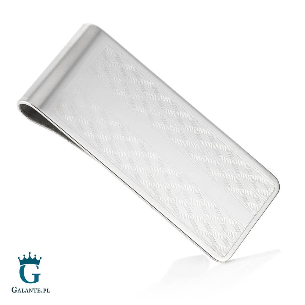 Elegancki klips do banknotów przyda się w momentach, gdy chcemy okiełznać sporą ilość gotówki lub spiąć ze sobą kilka kart płatniczych. Prezentowany model to bardzo elegancki klips wykonany ze stali szlachetnej w srebrnym kolorze i ozdobiony subtelnym motywem rombów. To wyjątkowy gadżet dla Pana, który posługuje się dużą ilością gotówki. Może być również oryginalnym upominkiem dla męża, szefa lub kolegi.