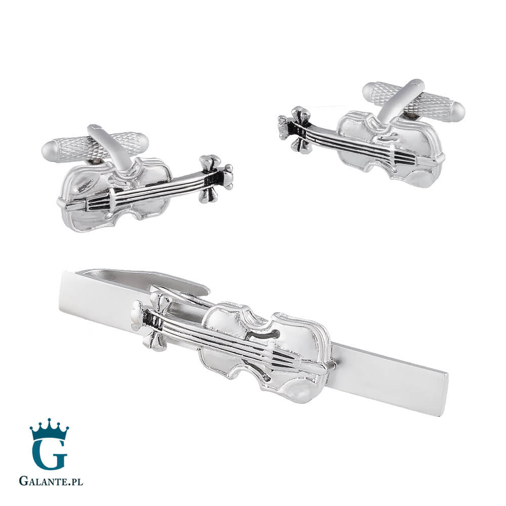 Skrzypce na spince do krawata są tej samej wielkości, co na spinkach do mankietów.