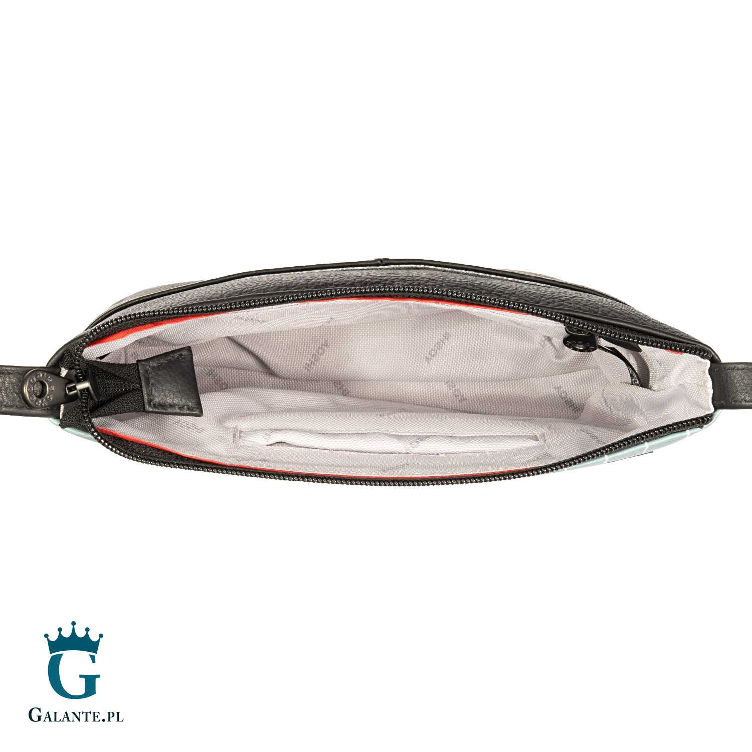 Torebka ma jedną komorę zamykaną na zamek błyskawiczny. W środku znajdziemy zamykaną na zamek kieszonkę na portfel lub dokumenty oraz kieszonkę na telefon. Dodatkowo torebka ma jedną zewnętrzną kieszeń wsuwaną. Komora ma podszewkę z solidnej mieszanki bawełny i poliestru w kolorze białym, z nadrukiem logo producenta.
