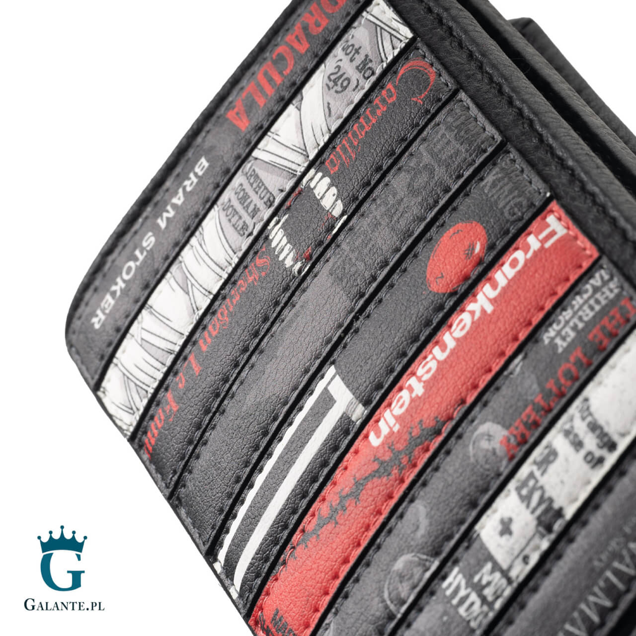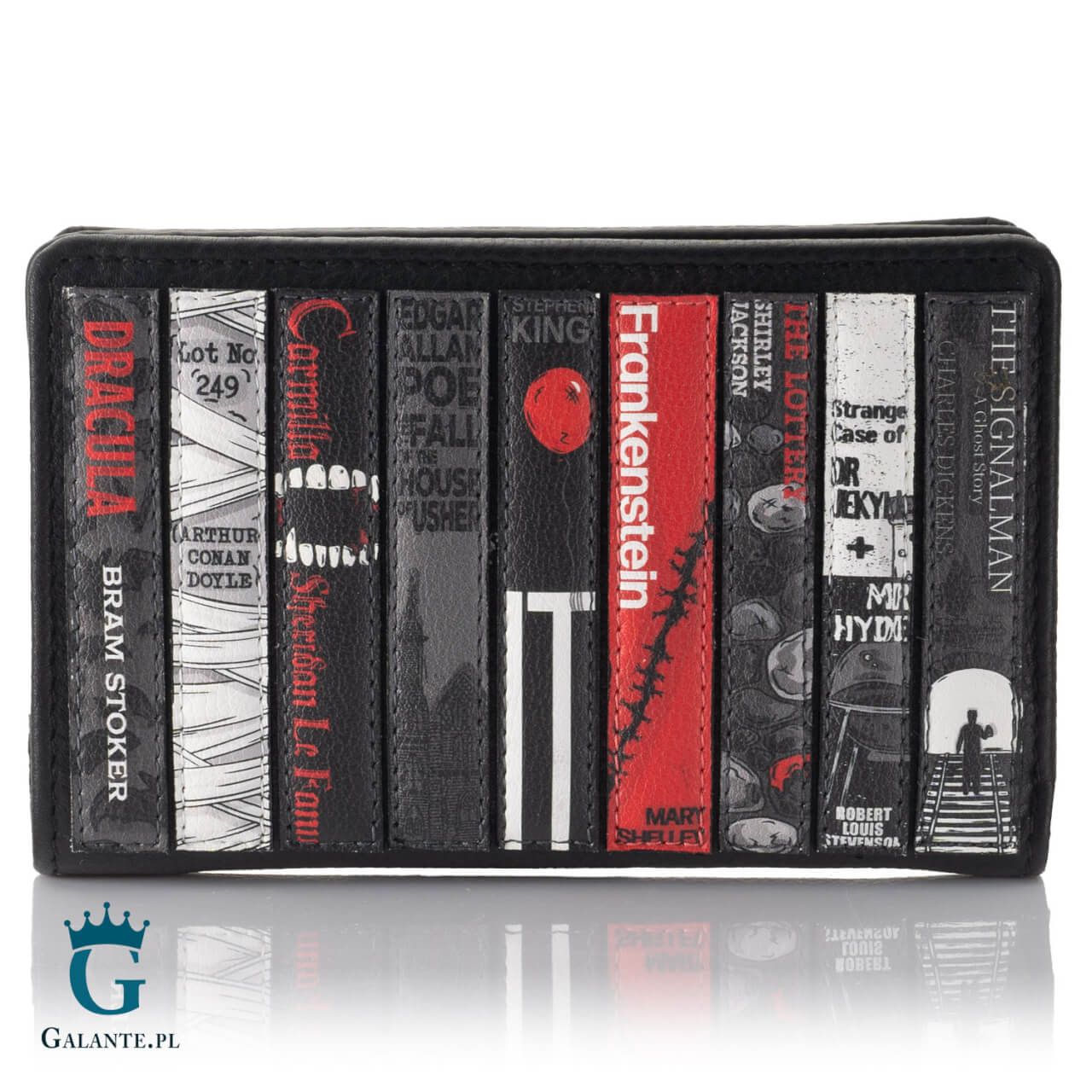 Brytyjska marka Yoshi znana jest z niezwykłych wzorów galanterii damskiej. Prezentowany portfel to prawdziwa gratka dla każdej kobiety, które uwielbia książki lub filmy z gatunku horror / thiller. Wykonany z wysokiej jakości czarnej skóry naturalnej, na okładce jest ozdobiony naszywkami okładek klasyki literackiej horroru, takich jak “Drakula” Brama Stokera, “Upadek Domu Usherów” Poego czy “To” Kinga. Jeśli lubisz dreszczyk emocji, jaki budzi dobry horror, ten portfel podbije Twoje serce!