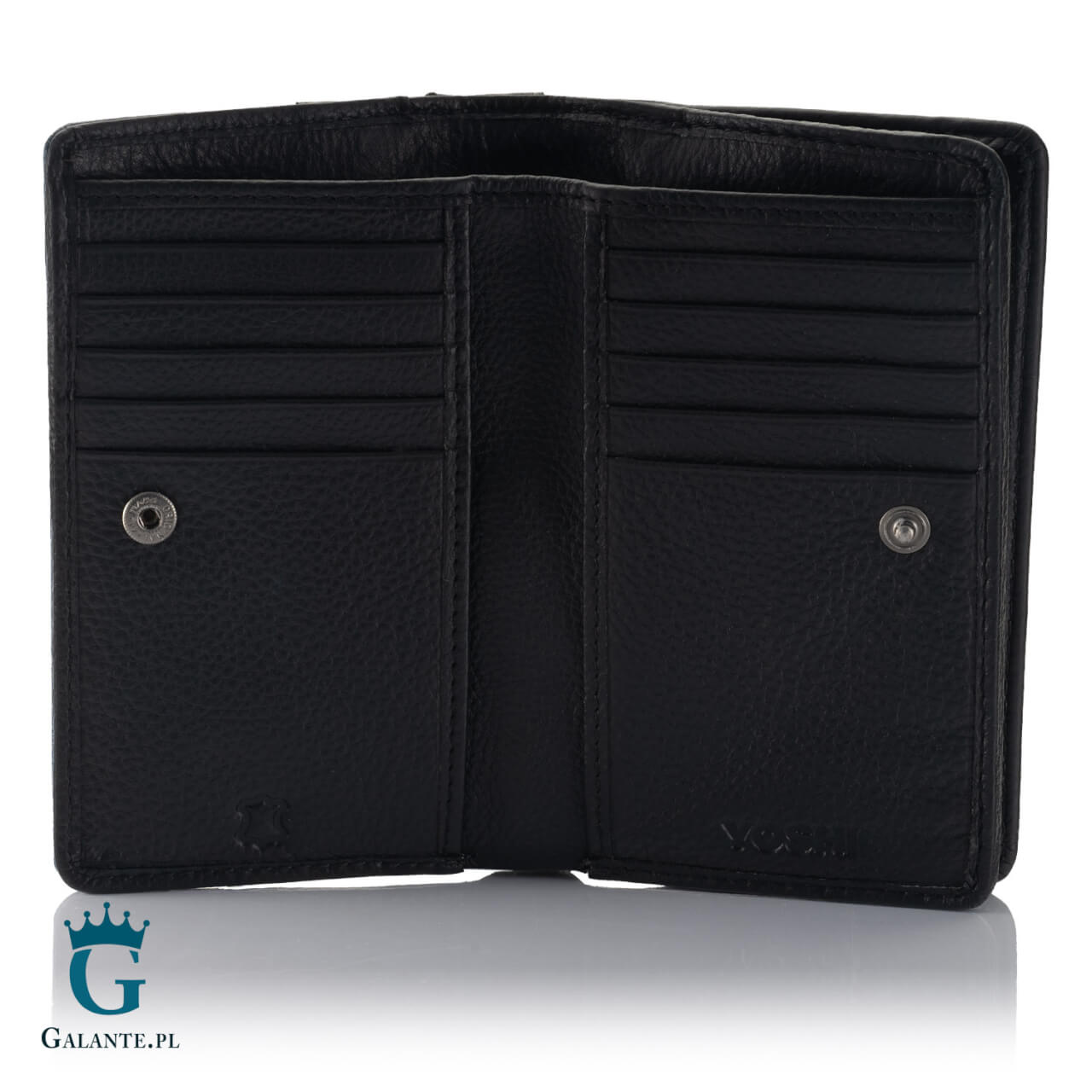 Model Y1089 to nieduży portfel o wymiarach: 14 cm szerokości, 8,5 cm wysokości i ok. 3 cm grubości. Portfel posiada: