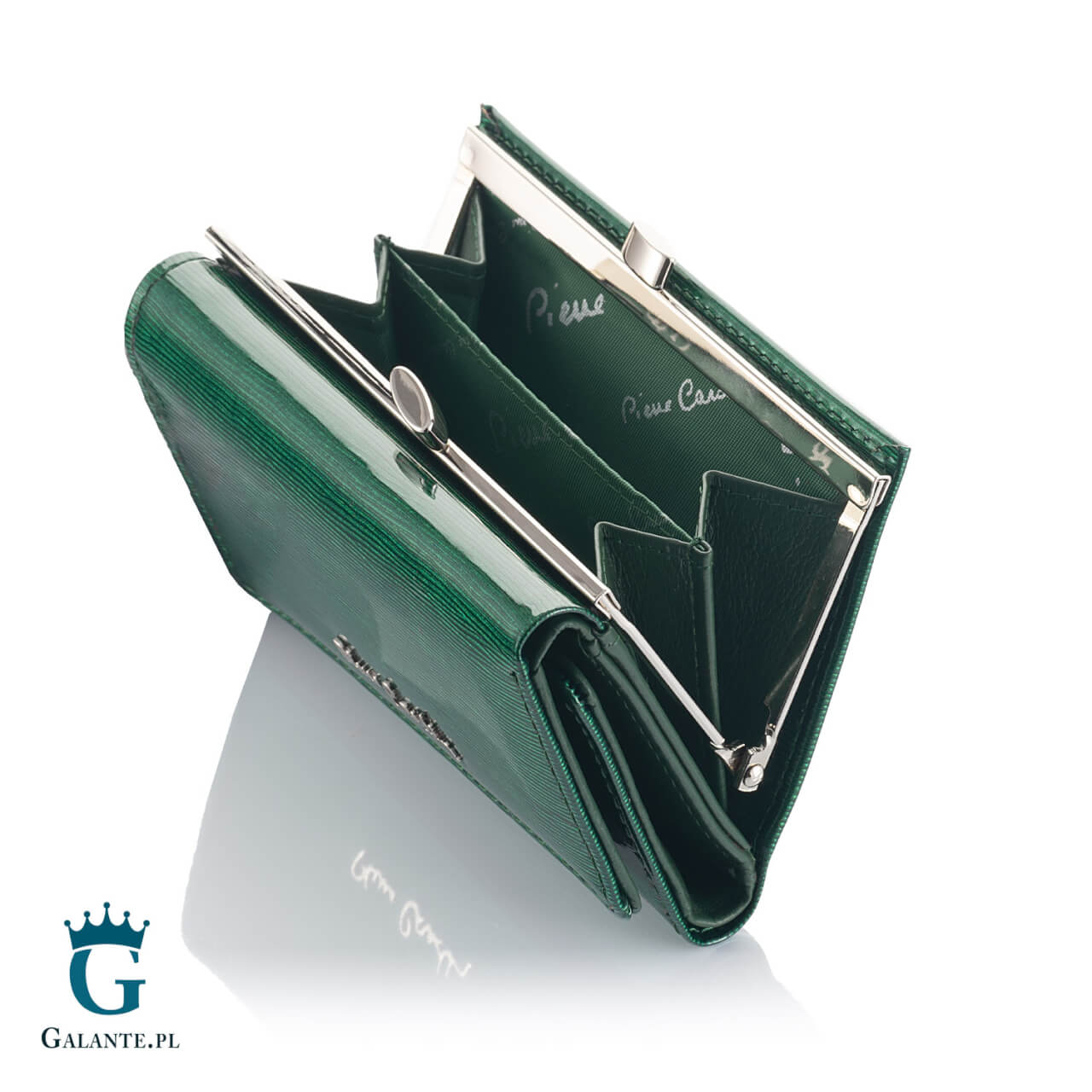 Mały Damski Portfel Pierre Cardin Lakierowany zapinany na bigiel 05 LINE 117 – zielony