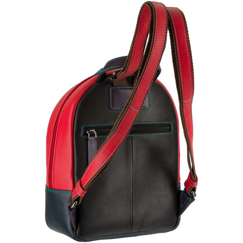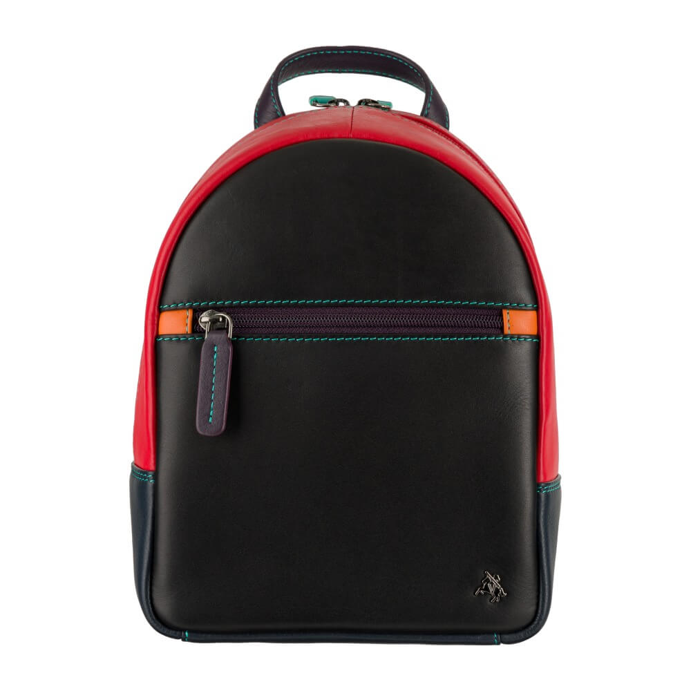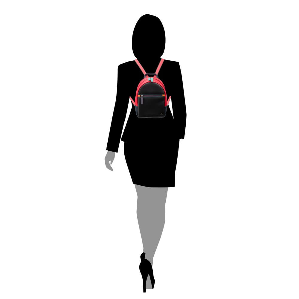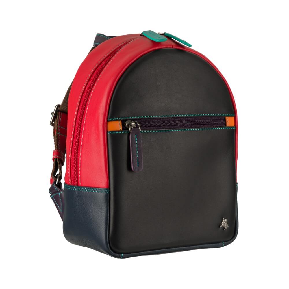 Mały plecaczek brytyjskiej marki Visconti jest idealny na wypad na miasto. Wykonany z wysokiej jakości skóry naturalnej w kolorze czarnym i czerwonym, z kolorowymi elementami i podszewką w wesołym pomarańczowym kolorze, jest równocześnie elegancki i szalenie oryginalny. Zmieści małą butelkę wody, portfel i dokumenty – sprawdzi się na spacerze, podczas krótkiej wycieczki lub wieczornego wyjścia na miasto. A jakość wykonania gwarantuje, że będzie służył właścicielce długie lata.