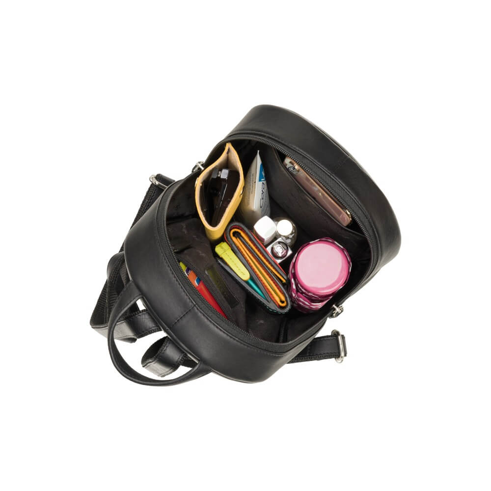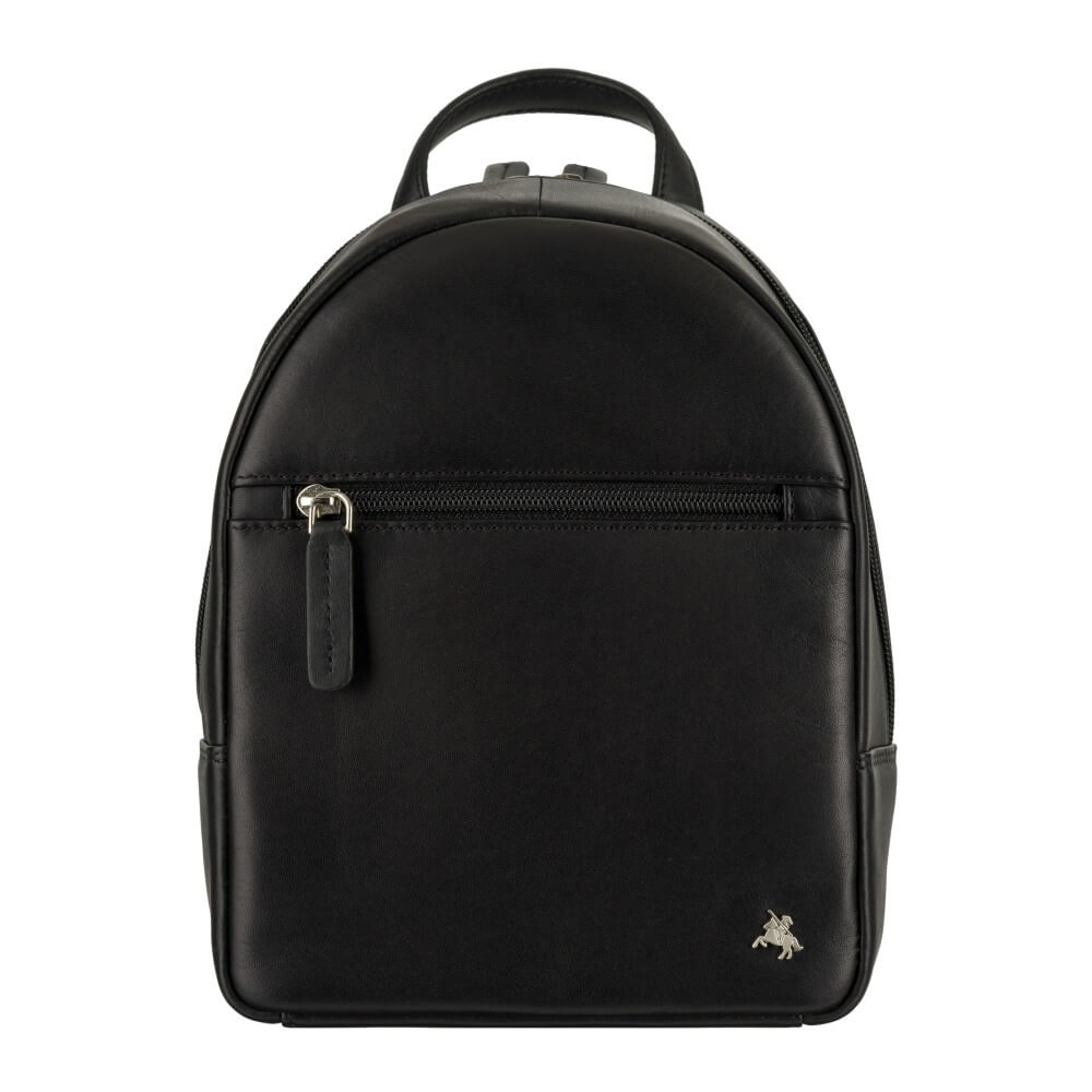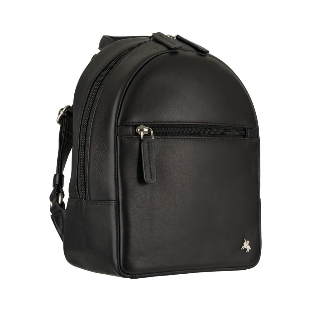 Mały plecaczek brytyjskiej marki Visconti jest idealny na wypad na miasto. Wykonany z wysokiej jakości skóry naturalnej w klasycznym czarnym kolorze, jest elegancki, trwały i praktyczny. Zmieści małą butelkę wody, portfel i dokumenty – sprawdzi się na spacerze, podczas krótkiej wycieczki lub wieczornego wyjścia na miasto. A jakość wykonania gwarantuje, że będzie służył właścicielce długie lata.