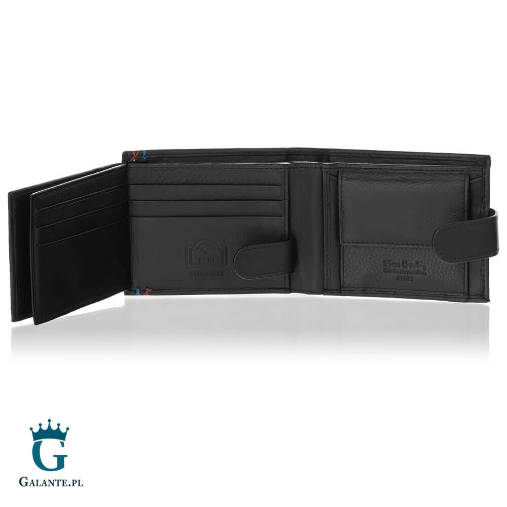 Francuska firma Pierre Cardin jest znanym na całym świecie symbolem szyku i elegancji. Kolekcja TILAK22 to klasyczne, czarne portfele wykonane z wysokiej jakości miękkiej skóry naturalnej, ozdobione na okładce metalowym logo marki oraz dyskretnymi przeszyciami czerwoną i niebieską nicią. Portfele z tej kolekcji łączą typowy dla Pierre Cardin bezpretensjonalny minimalizm z nutką nowoczesności.