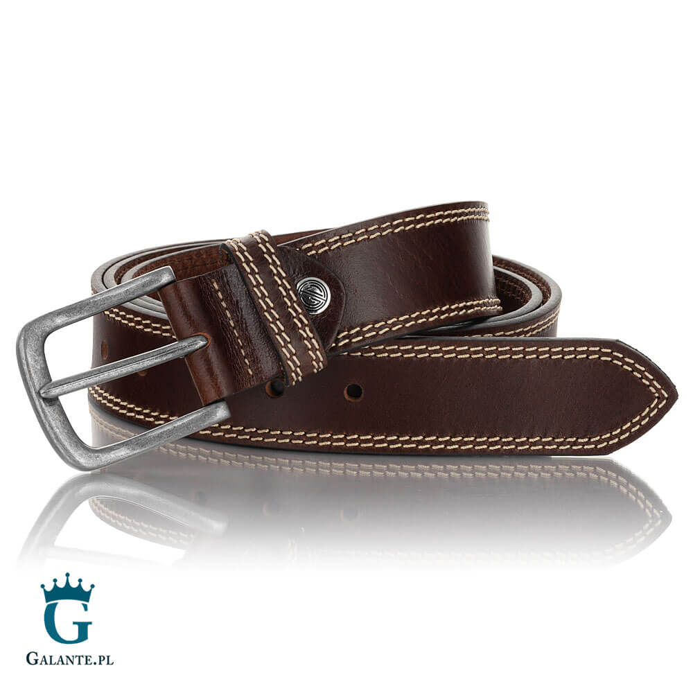 Prezentowany pasek jest wykonany z jednego kawałka wysokiej jakości skóry naturalnej i ozdobiony eleganckim podwójnym przeszyciem w kontrastującym kolorze. Zakończony solidnie wykonaną, klasyczną klamrą w kolorze starego srebra – ten pasek niemieckiej marki Lindenmann prezentuje się naprawdę imponująco. Z pewnością spełni oczekiwania nawet najbardziej wymagających mężczyzn i zwieńczy każdą casualową stylizację w świetnym guście!