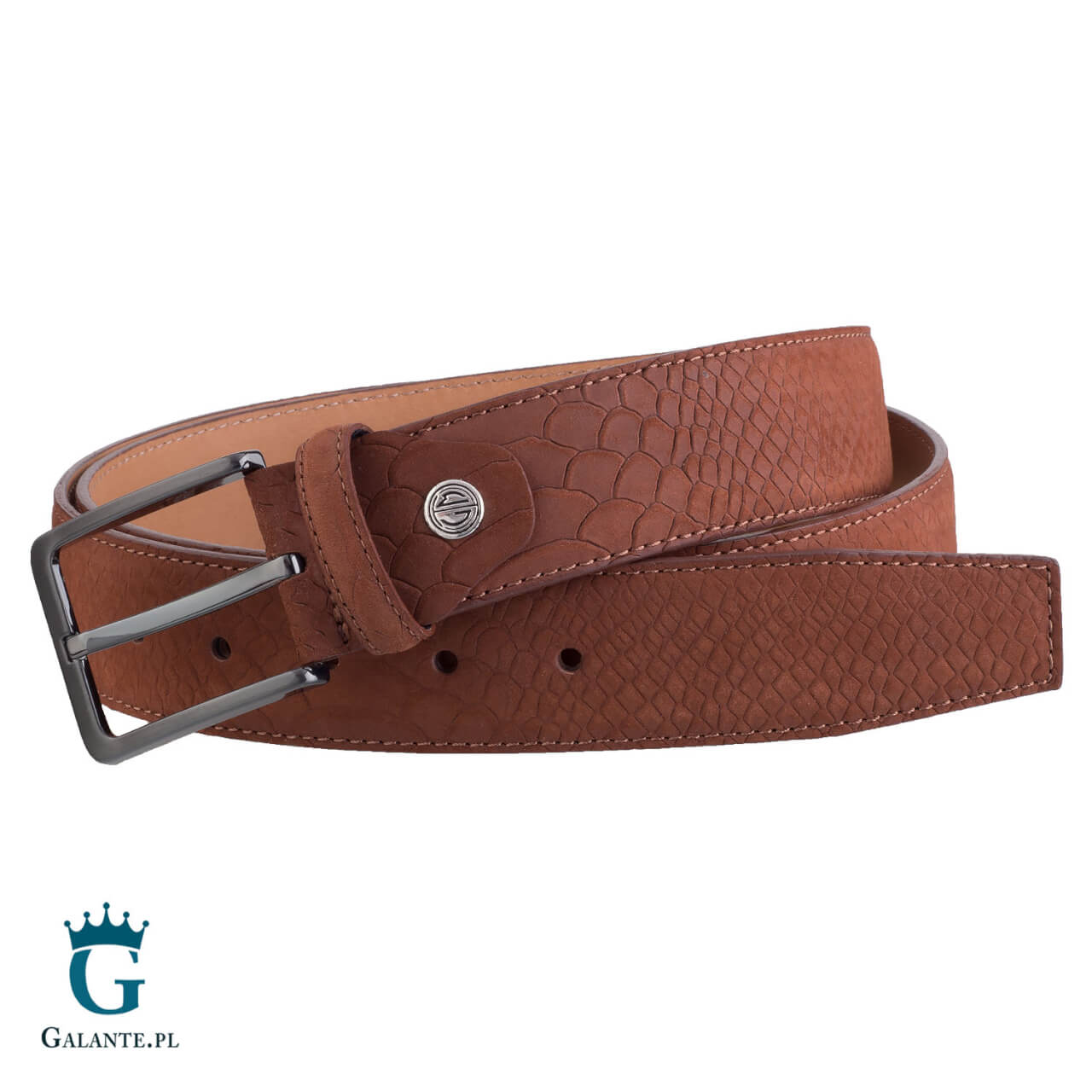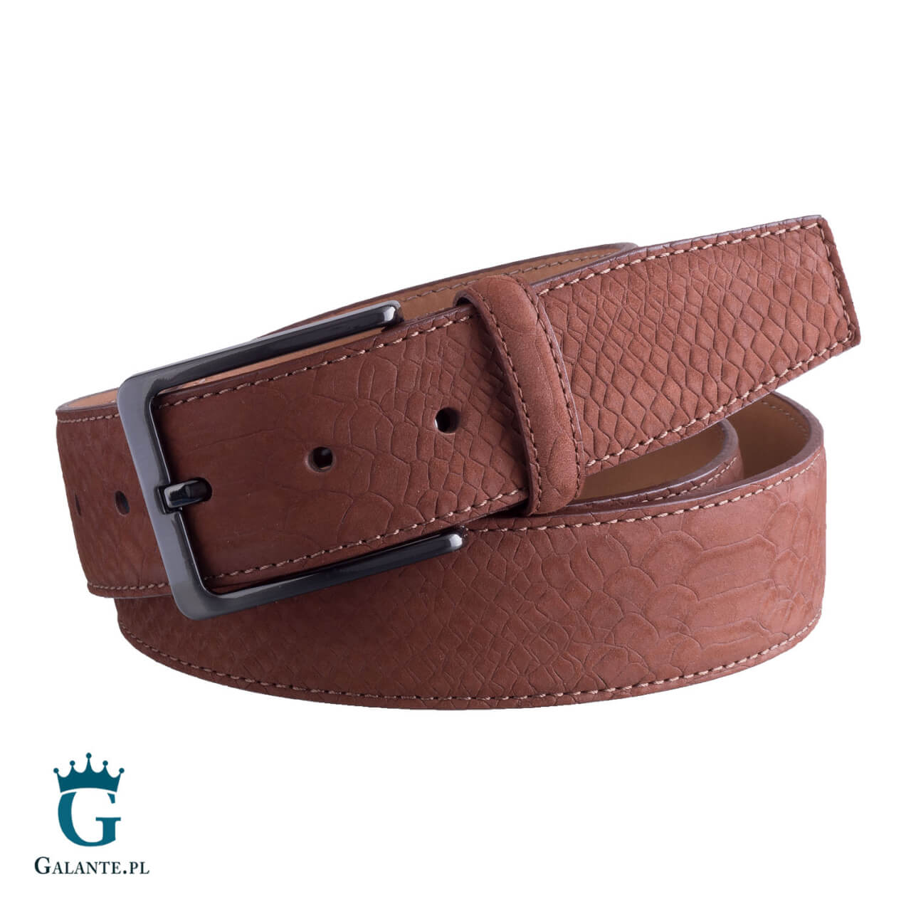 Pasek do spodni modnego mężczyzny – wykonany z jednego kawałka skóry zamszowej w kolorze ciepłego brązu, ozdobionej nieregularną fakturą przypominającą skórę węża. Metalowa klamra w kolorze ciemnego srebra stanowi doskonałe wykończenie paska. Ten oryginalny, stylowy model sprawdzi się wyśmienicie jako dodatek do codziennego, nieco luźniejszego stroju – do jeansów lub spodni chinos i casualowej koszuli. Pasek firmy Lindenmann spełni oczekiwania mężczyzn poszukujących dobrej jakości, modnych dodatków w przystępnej cenie.