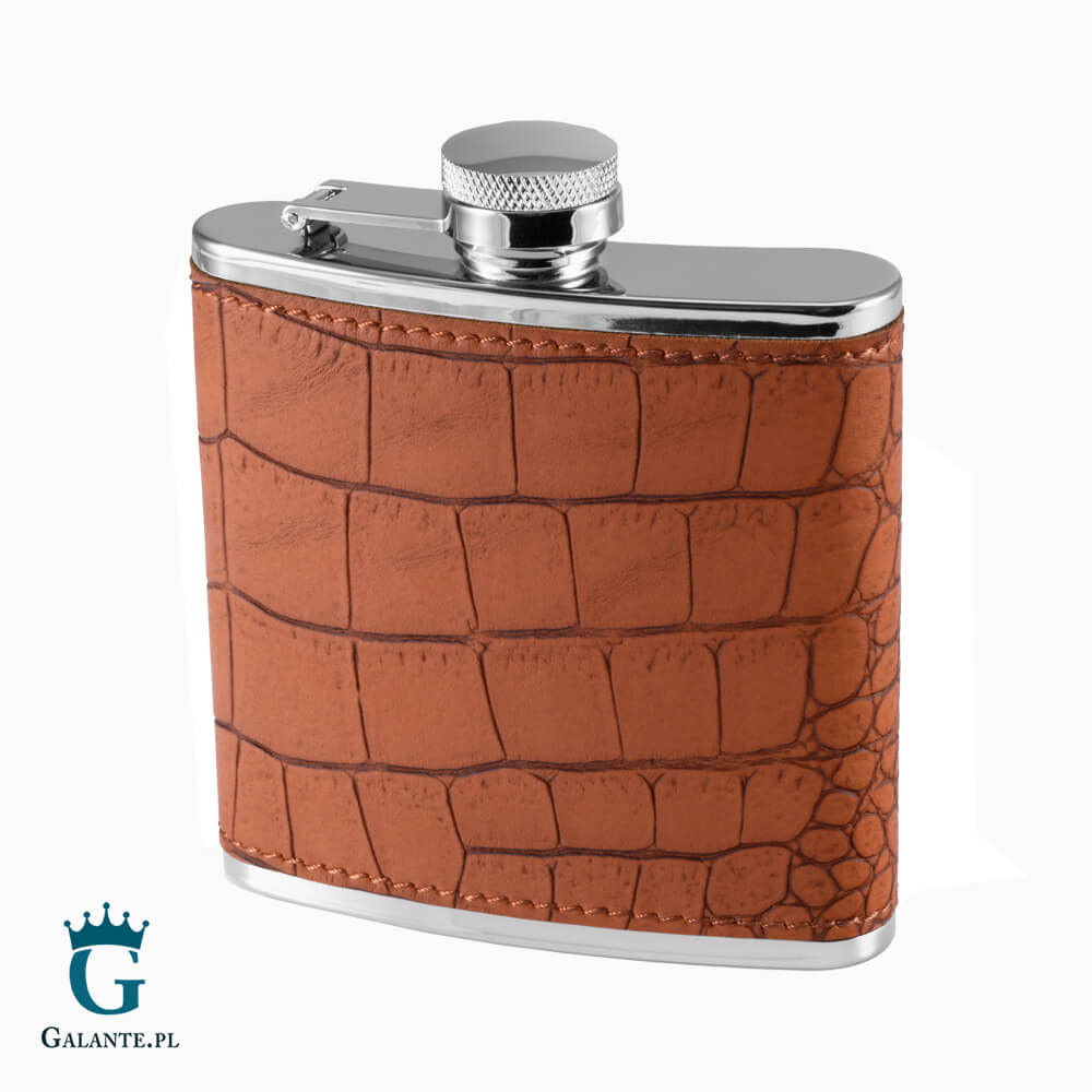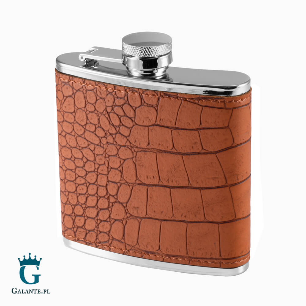 Prezentowana piersiówka to produkt wysokiej jakości, wykonany ze stali szlachetnej i ozdobiony skórzaną, brązową obwolutą we wzór przypominający skórę węża. Piersiówka nadaje się do wypełnienia wyrobami spirytusowymi.