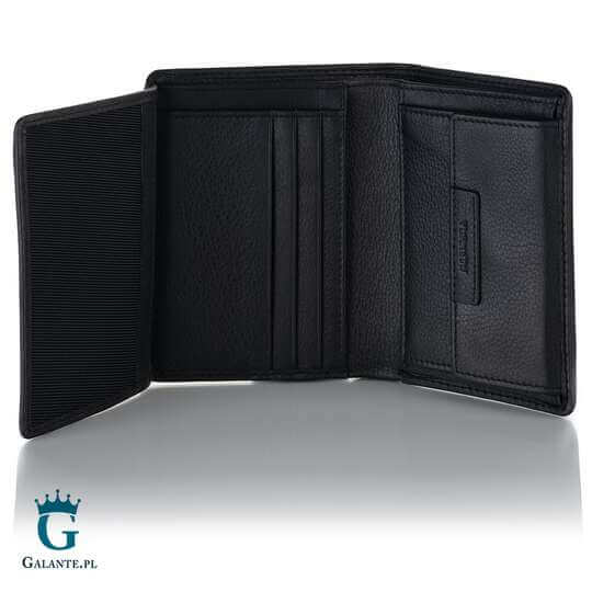 Model 105-115 to średniej wielkości portfel o orientacji pionowej i wymiarach 11,5 cm x 9,5 cm. Posiada: kieszeń na bilon zamykaną na zatrzask, dwie przegrody na banknoty, 6 miejsc na karty i 5 dodatkowych kieszeni, w tym jedna osiatkowana. To świetny model dla każdego mężczyzny, który lubi portfele pojemne, a równocześnie mieszczące się w kieszeni spodni lub marynarki.
