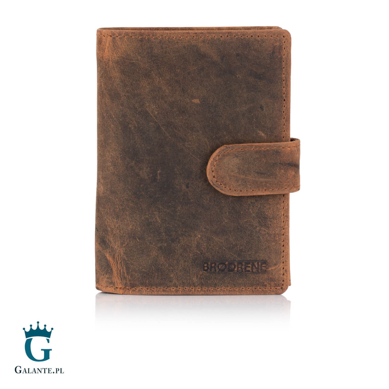 Pojemny portfel męski ze skóry nubuk Brodrene G-28 – brązowy