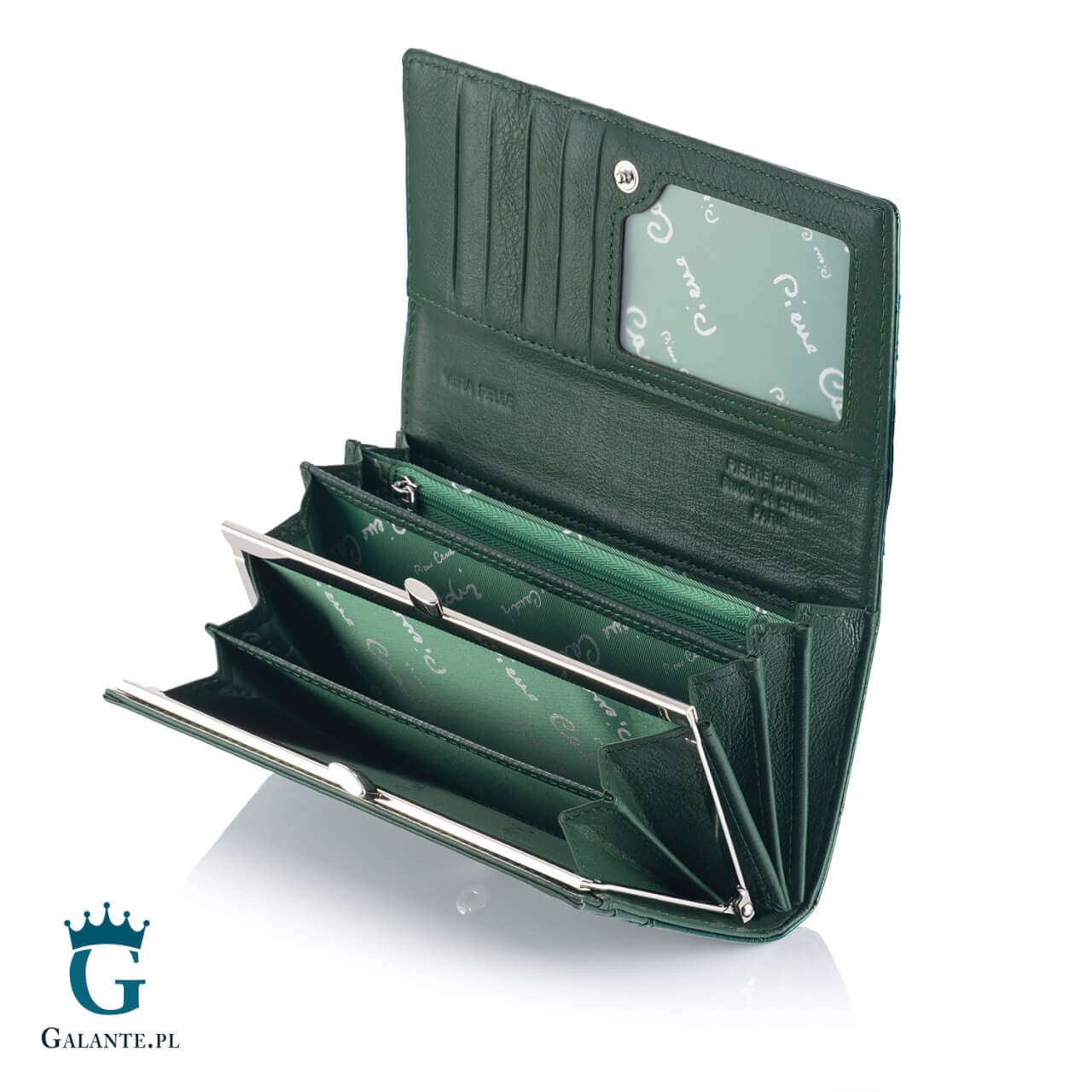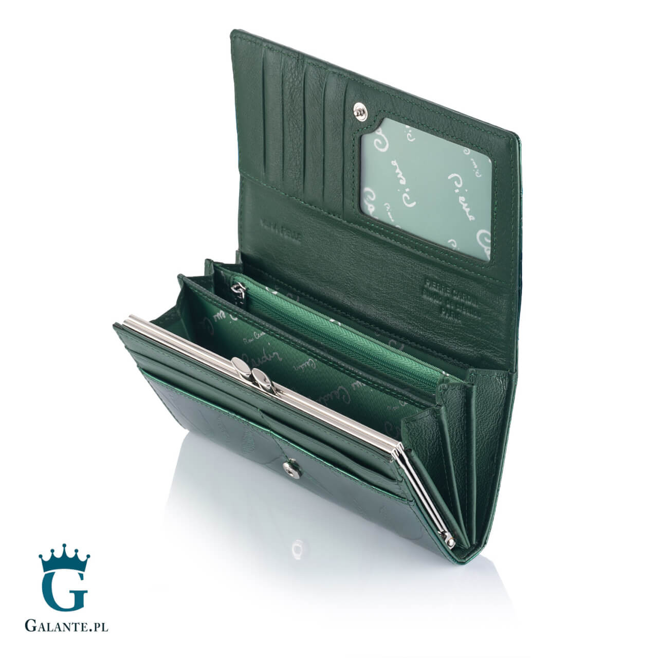 Portfel damski skórzany Pierre Cardin lakier zielony