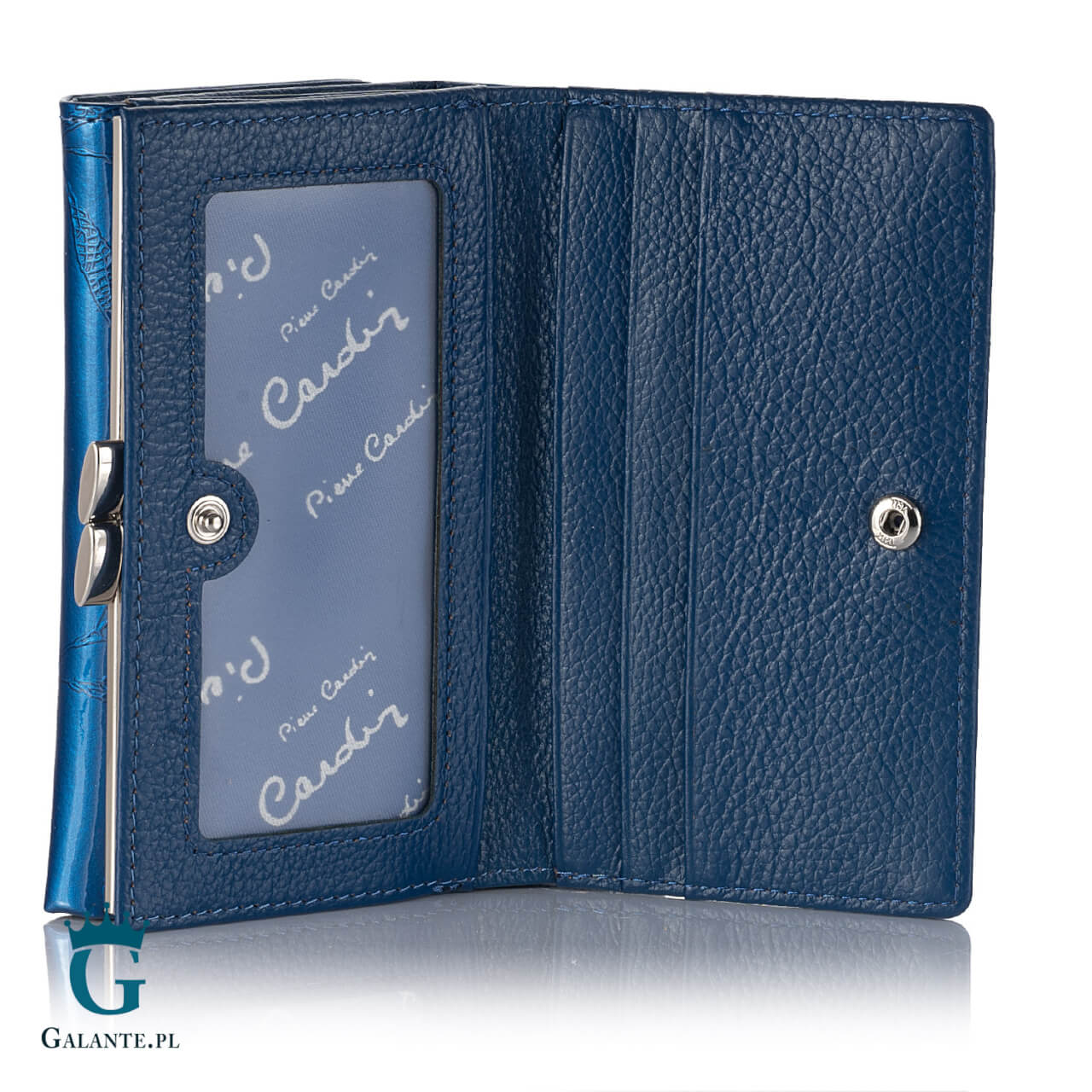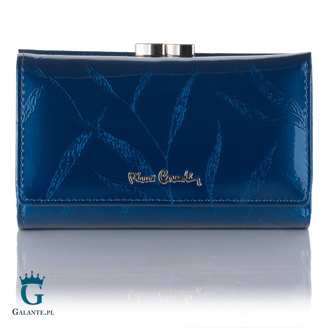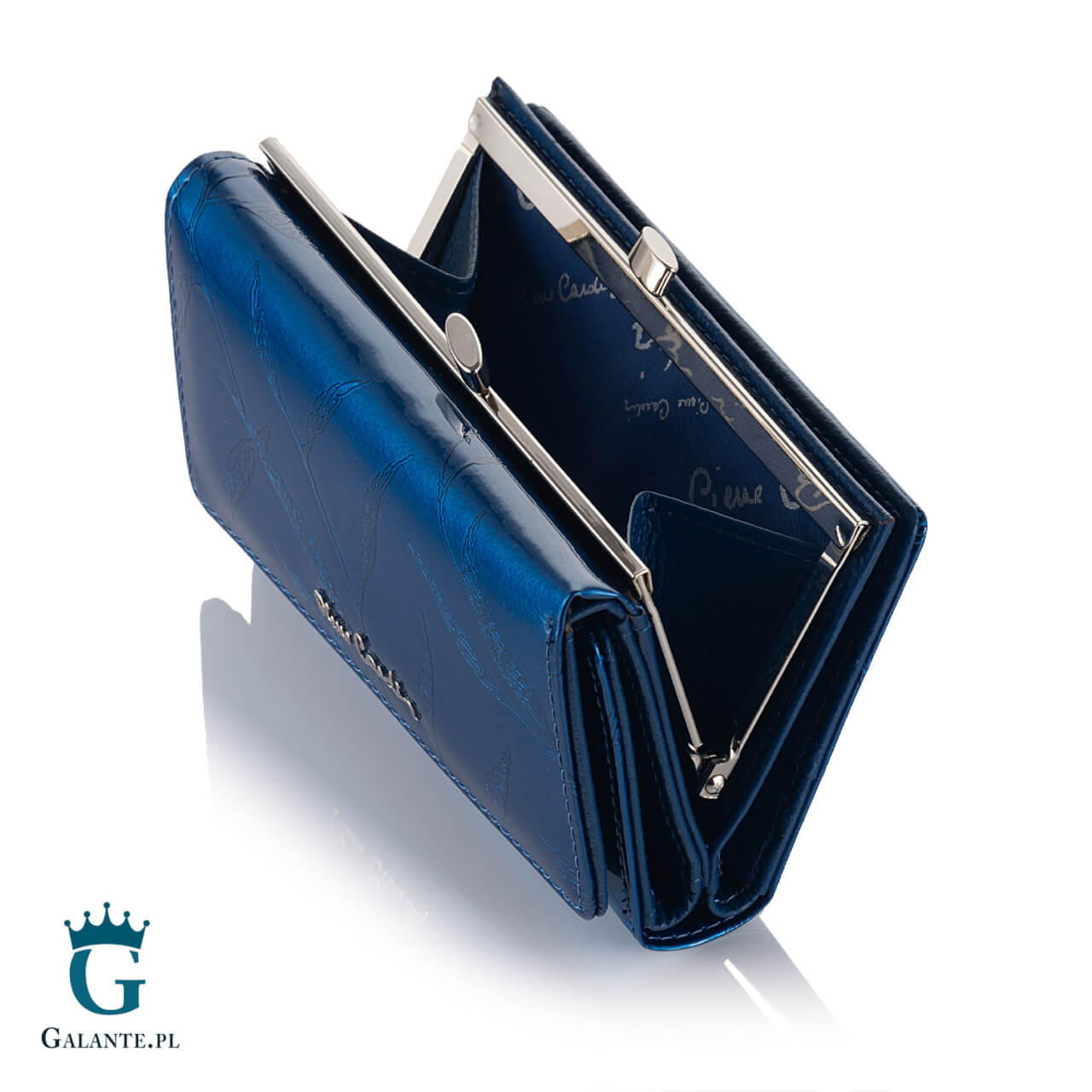 Portfel damski skórzany Pierre Cardin lakier niebieski