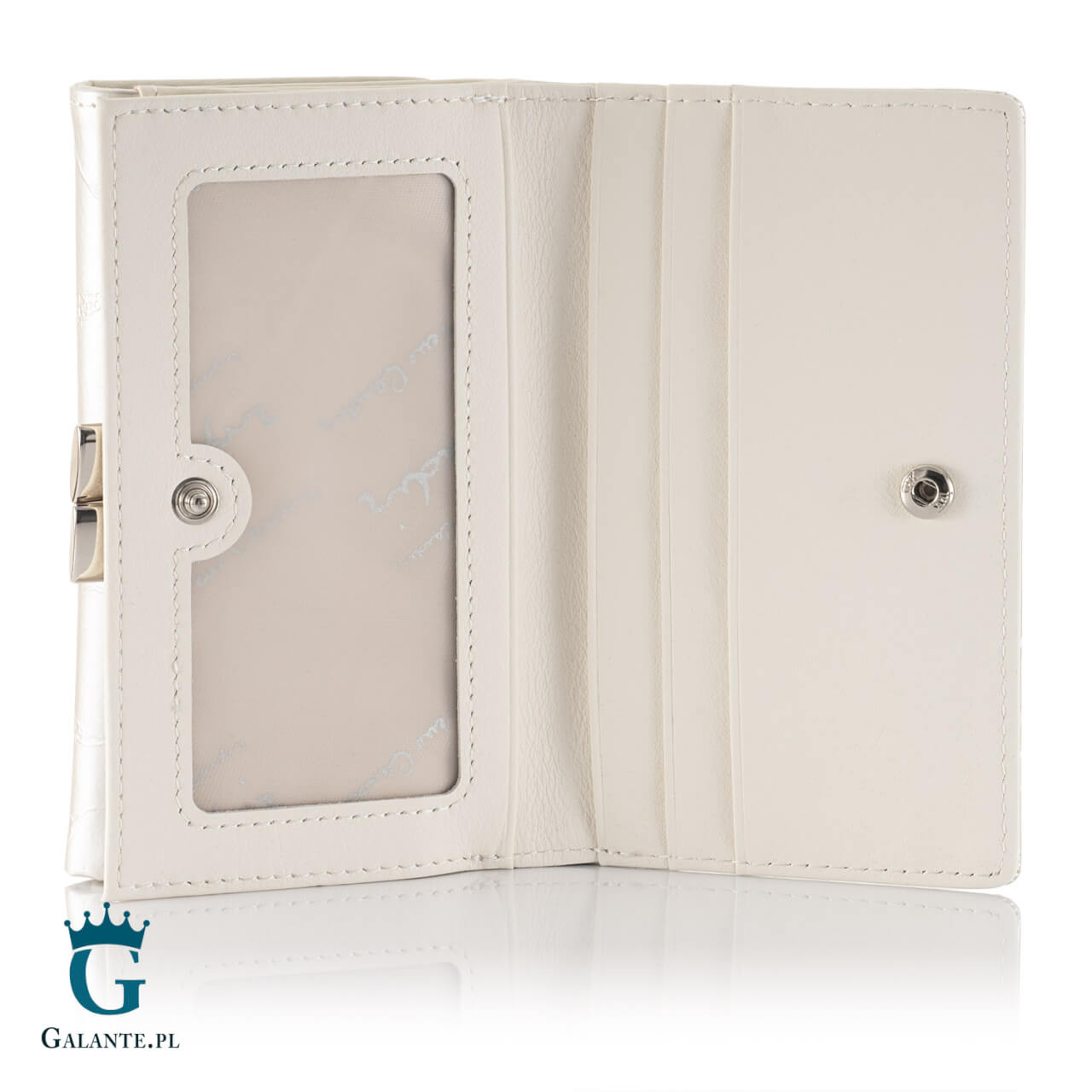 Portfel mimo umiarkowanych rozmiarów jest niezwykle przestronny i funkcjonalny. Posiada zapinaną na bigiel kieszeń na bilon oraz dwie części zapinane na zarzask. Zawierają one przegrodę na banknoty, aż 14 kieszonek na karty, dwie przeźroczyste kieszonki, w tym jedną dostatecznie dużą, aby pomieścić dowód rejestracyjny, oraz 3 dodatkowe kieszonki na dokumenty lub bilety parkingowe.