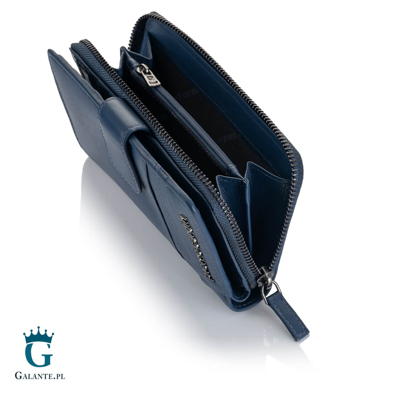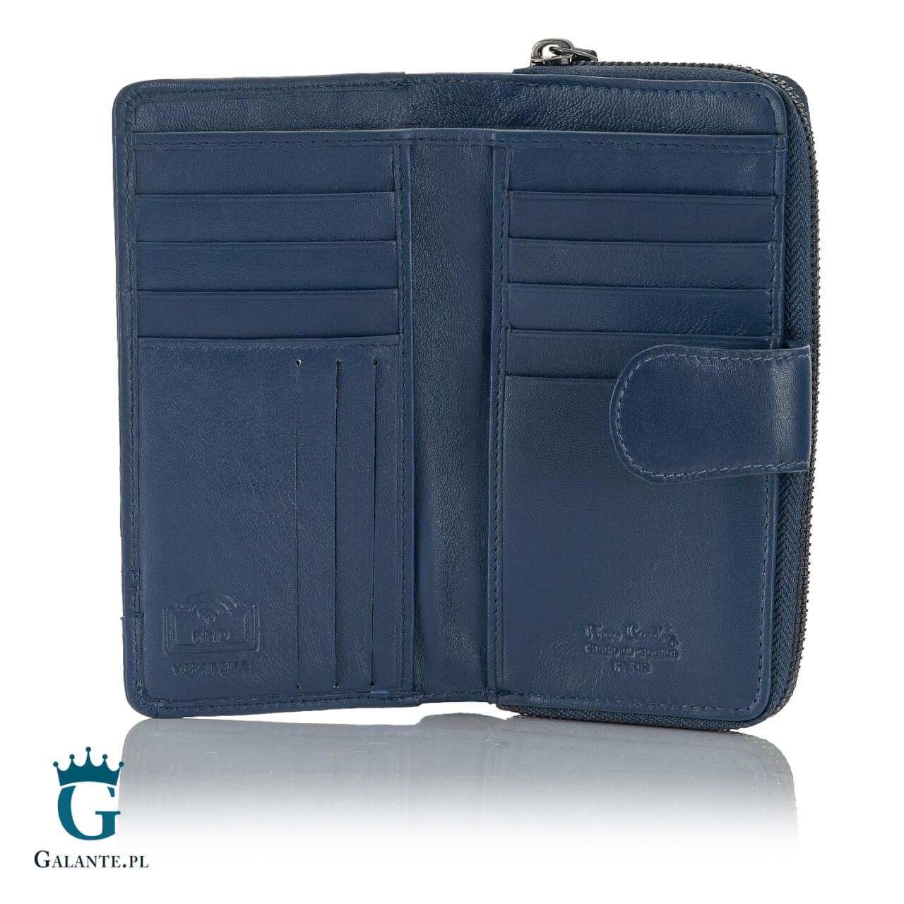 - W części zamykanej na zamek błyskawiczny znajdziemy dwie przegródki na monety oraz dodatkową “bezpieczną” kieszonkę zamykaną dodatkowo na zamek;