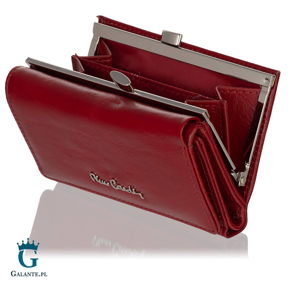 Portfel damski Pierre Cardin ze skóry włoskiej na bigiel czerwony
