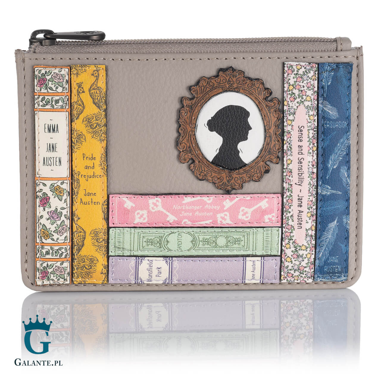 Bilonówka wykonana z wysokiej jakości skóry naturalnej w ciepłym szarym kolorze, spodoba się każdej kobiecie, która docenia wieczór z dobrą książką. Jest ozdobiona naszywką przedstawiającą dzieła Jane Austen – świetnie znane z wielu ekranizacji powieści takie jak Duma i Uprzedzenie, Rozważna i Romantyczna czy Mansfield Park. Klasyczne XIX-wieczne romanse osadzone w niepowtarzalnym klimacie angielskiej prowincji przez dziesięciolecia bawiły i inspirowały kobiety i do dziś nie straciły uroku.
