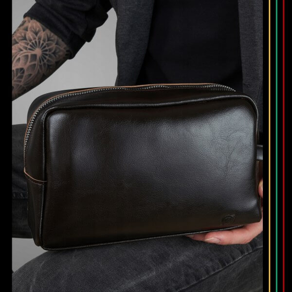 Skórzana kosmetyczka męska Brodrene KL01 Ciemny Brąz