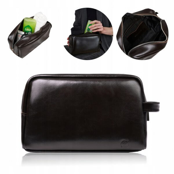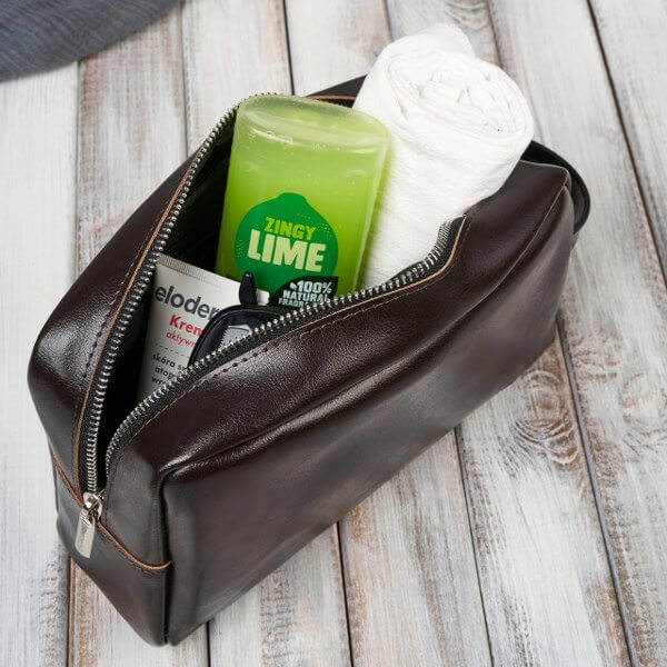 Kosmetyczka męska polskiej marki Brodrene wykonana ze skóry naturalnej licowej o gładkim, lekko błyszczącym licu. Elegancka, praktyczna i trwała, przyda się każdemu mężczyźnie, który dużo czasu spędza w podróżach. Dostępna w trzech kolorach: czarnym, ciemnobrązowym i jasnobrązowym.